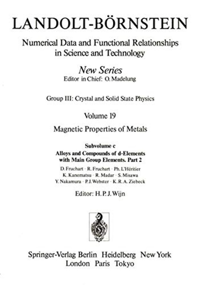 Since 1970 several volumes of the Landolt-Börnstein New Series have appeared which are devoted to, or at least include, the magnetic properties of some special groups of substances. Volume 19 of Group III (Crystal and Solid State Physics) deals with the magnetic properties of metals, alloys and metallic compounds containing at least one transition element. The amount of information available has become so substantial that several subvolumes are needed to cover it all. The first subvolumes deal with the intrinsic magnetic properties, i. e. those magnetic properties which depend only on the chemical composition and the crystal structure. Data on the properties which also depend on the preparation of the samples measured, as for instance, thin films or amorphous alloys and the magnetic alloys used in technical applications, will be compiled in the last subvolumes of the series. The first subvolume, III/19 a, appeared in 1986. It covers the magnetic properties of metals and alloys of the 3d, 4d and 5d transition elements. The second subvolume, III/19 b (1987), covers the magnetic properties of the binary metallic alloys and compounds of 3d transition elements with the elements of group 1B, 2B and 3B of the Periodic System. The present subvolume III/19 c completes the survey of the magnetic data of the metallic compounds of d transition-elements with elements of the main groups of the Periodic System of the elements. The major groups of ternary compounds, i. e. the Heusler alloys and the compounds with perovskite structure, are being treated in separate chapters.