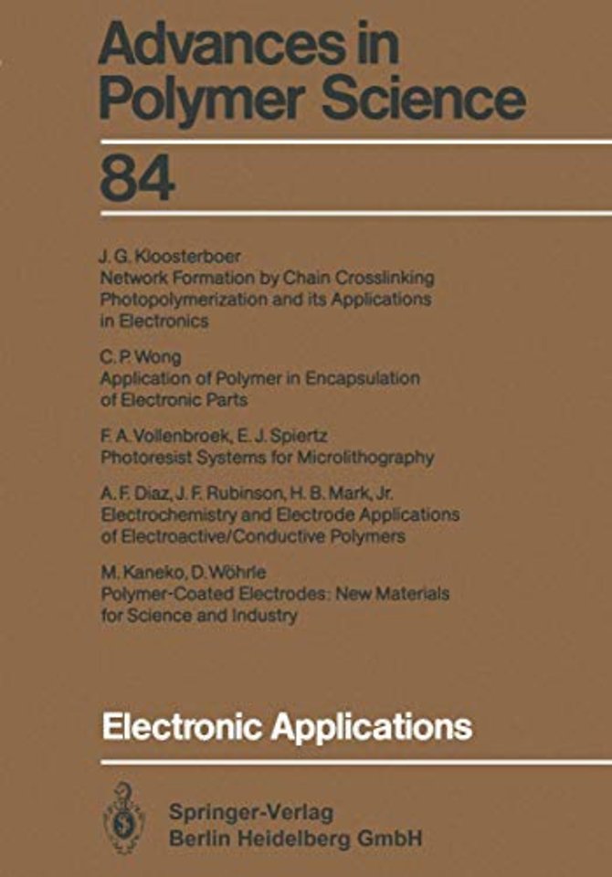 Network formation by chain crosslinking photopolymerization and its applications in electronics.- Application of polymer in encapsulation of electronic parts.- Photoresist systems for microlithography.- Electrochemistry and electrode applications of electroactive/conductive polymers.- Polymer-coated electrodes: New materials for science and industry.