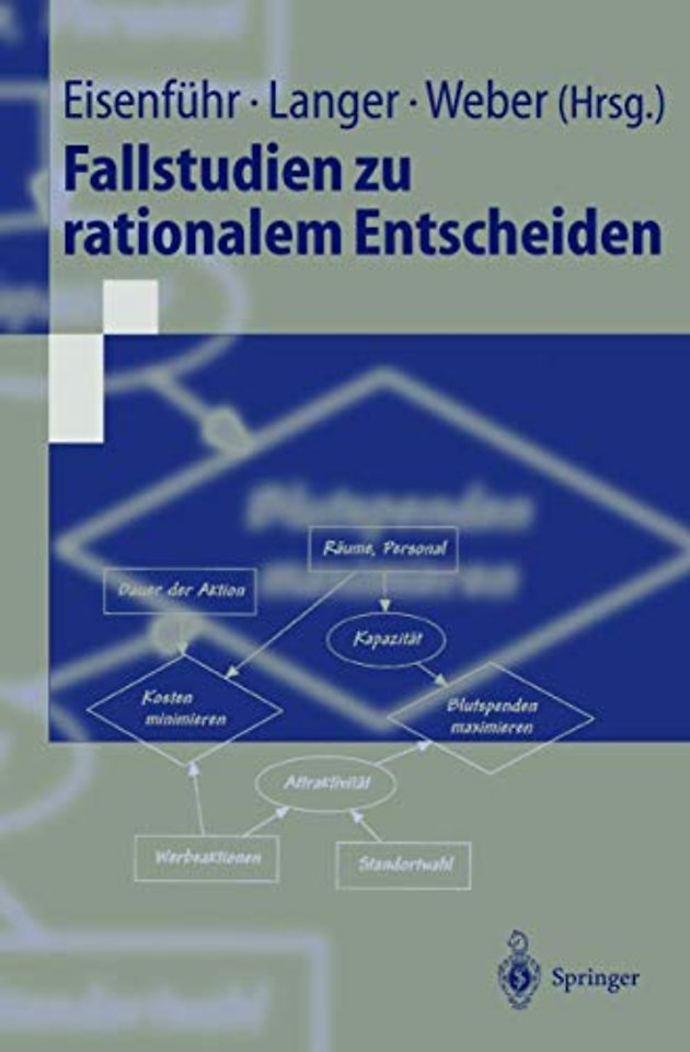 Fallstudie A Entscheidung für eine Fremdsprachenausbildung.- Zielstrukturierung — Generierung und Vorauswahl von Alternativen — Wertfunktionen — Zielgewichtung.- Fallstudie B Planung einer Blutsammelaktion.- Zielstrukturierung — Alternativengenerierung — Multiattributive Wertfunktionen — Zielgewichtung.- Fallstudie C Investitionsentscheidungen unter Unsicherheit: Risikoanalyse und Realoptionen.- Sensitivitätsanalyse — Monte-Carlo-Simulation — Realoptionen.- Fallstudie D Gewährung und Gestaltung einer Fremdfinanzierung — Entscheidungen in der Kreditpraxis.- Multiattributive Wertfunktion — Wahrscheinlichkeitsgenerierung — Sensitivitätsanalyse.- Fallstudie E Kosten-Nutzwert-Analyse zur Unterstützung medizinischer Entscheidungsprobleme.- Entscheidungsbaum — Kosten-Nutzwert-Analyse — Bayes-Theorem — Dominanzanalyse — Multiattributive Nutzentheorie — Sensitivitätsanalyse.- Fallstudie F Nutzenanalyse der betrieblichen Berufsausbildung.- Zielstrukturierung — Alternativengenerierung — Wahrscheinlichkeitsmessung — Ermittlung der Nutzenfunktion — Multiplikatives Modell — Sensitivitätsanalyse.- Fallstudie G Pharmakoökonomische Analyse von Onychomycose-Behandlungen.- Unvollständige Information — Sensitivitätsanalyse — Tornadodiagramm— Erwartungswertdominanz — Stochastische Dominanz — Simulation — Strukturierung.- Fallstudie H Berufungsliste für eine Professur.- Zielstrukturierung — Multiattributive Wertfunktion — Zielgewichtung — Wahrscheinlichkeitsmessung — Sensitivitätsanalyse — Additive Nutzenfunktion — Gruppenentscheidung.- Fallstudie I Die Vergabe der Fußballweltmeisterschaft 2006.- Generierung eines Zielsystems — Aggregation individueller Präferenzen.- Fallstudie J Behavioral Financial Engineering: Entwicklung von Finanzinnovationen unter Berücksichtigung deskriptiver Entscheidungstheorien.- Präskriptive vs. deslcriptive Entscheidungstheorie — Erwartungsnutzentheorie — Prospekt-?heorie — Wertfunktion— Wahrscheinlichkeitsgewichtungsfunktion — Parameterbestimmung — Framing-Effekte — Mental Accounting — Behavioral Finance.- Fallstudie K Contingent Valuation — der Fall der Exxon Valdez.- Bewertung von Zahlungsreihen — Zeitpräferenz — Sensitivitätsanalyse — Deskriptive — Entscheidungstheorie — Befragungstechniken.
