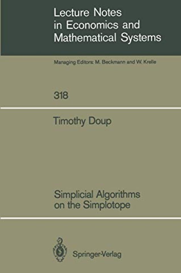 I Introduction and Definitions.- 1. Introduction.- 1.1. Introduction.- 1.2. Historical perspective.- 1.3. Outline of the monograph.- 2. Definitions and Existence Theorems.- 2.1. Introduction.- 2.2. Basic concepts and notations.- 2.3. Existence theorems.- 2.4. Labelling functions and accuracy.- 2.5. Pure exchange economies.- 2.6. Quadratically constrained quadratic programming.- 2.7. Economies with a block diagonal supply-demand pattern.- 2.8. Noncooperative N-person games.- 3. Triangulations of Sn and S.- 3.1. Introduction.- 3.2. The Q-triangulation of Sn and S.- 3.3. The Q’-triangulation of S.- 3.4. The V-triangulation of Sn.- 3.5. The V’- and the V-triangulation of S.- 3.6. Variants of the V-triangulation.- II Algorithms on the Unit Simple.- 4. An introduction to Simplicial Algorithms on the Unit Simplex.- 4.1. Introduction.- 4.2. The variable dimension restart algorithm on Sn for proper integer labelling rules.- 4.3. Variable dimension restart algorithms on Sn for arbitrary integer labelling rules.- 4.4. Variable dimension restart algorithms on Sn for vector labelling.- 4.5. A path following interpretation of the variable dimension restart algorithm for the V-triangulation.- 5. The (2n+1-2)-Ray Algorithm.- 5.1. Introduction.- 5.2. The path of the algorithm.- 5.3. The subdivision of Sn.- 5.4. The steps of the algorithm.- 6. The 2-Ray Algorithm.- 6.1. Introduction.- 6.2. The path of the algorithm.- 6.3. The subdivision of Sn.- 6.4. The steps of the algorithm.- 7. Comparisons and Computational Results.- 7.1. Introduction.- 7.2. A comparison of the variable dimension restart algorithms on Sn.- 7.3. Computational results.- III Algorithms on the Simplotope.- 8. An Introduction to Simplicial Algorithms on the Simplotope.- 8.1. Introduction.- 8.2. The sum-ray algorithm on S for proper integer labelling rules.- 8.3. Variable dimension restart algorithms on S for arbitrary integer labelling rules.- 8.4. The sum-ray algorithm on S for vector labelling.- 8.5. A path following interpretation of the sum-ray algorithm for the V’ -triangulation.- 9. The Product-Ray Algorithm.- 9.1. Introduction.- 9.2. The path of the algorithm.- 9.3. The subdivision of S.- 9.4. The steps of the algorithm.- 10. The Exponent-Ray Algorithm.- 10.1. Introduction.- 10.2. The path of the algorithm.- 10.3. The subdivision of S.- 10.4. The steps of the algorithm.- 11. Comparisons and Computational Results.- 11.1. Introduction.- 11.2. A comparison of the variable dimension restart algorithms on S.- 11.3. Computational results.- IV Continuous Deformation on the Simplotope.- 12. The Continuous Deformation Algorithm on the Simplotope.- 12.1. Introduction.- 12.2. The path of the algorithm.- 12.3. Triangulation of S x [1,?).- 12.4. Triangulation of the boundary of S x [1, ?).- 12.5. The steps of the continuous deformation algorithm on S.- References.
