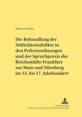Die Behandlung Der Sittlichkeitsdelikte in Den Policeyordnungen Und Der Spruchpraxis Der Reichsstaedte Frankfurt Am Main Und Nuernberg Im 15. Bis 17. Jahrhundert