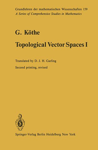One Fundamentals of General Topology.- § 1. Topological spaces.- 1. The notion of a topological space.- 2. Neighbourhoods.- 3. Bases of neighbourhoods.- 4. Hausdorff spaces.- 5. Some simple topological ideas.- 6. Induced topologies and comparison of topologies. Connectedness.- 7. Continuous mappings.- 8. Topological products.- § 2 . Nets and filters.- 1. Partially ordered and directed sets.- 2. Zorn’s lemma.- 3. Nets in topological spaces.- 4. Filters.- 5. Filters in topological spaces.- 6. Nets and filters in topological products.- 7. Ultrafilters.- 8. Regular spaces.- § 3. Compact spaces and sets.- 1. Definition of compact spaces and sets.- 2. Properties of compact sets.- 3. Tychonoff’s theorem.- 4. Other concepts of compactness.- 5. Axioms of countability.- 6. Locally compact spaces.- 7. Normal spaces.- § 4. Metric spaces.- 1. Definition.- 2. Metric space as a topological space.- 3. Continuity in metric spaces.- 4. Completion of a metric space.- 5. Separable and compact metric spaces.- 6. Baire’s theorem.- 7. The topological product of metric spaces.- § 5. Uniform spaces.- 1. Definition.- 2. The topology of a uniform space.- 3. Uniform continuity.- 4. Cauchy filters.- 5. The completion of a Hausdorff uniform space.- 6. Compact uniform spaces.- 7. The product of uniform spaces.- § 6. Real functions on topological spaces.- 1. Upper and lower limits.- 2. Semi-continuous functions.- 3. The least upper bound of a collection of functions.- 4. Continuous functions on normal spaces.- 5. The extension of continuous functions on normal spaces.- 6. Completely regular spaces.- 7. Metrizable uniform spaces.- 8. The complete regularity of uniform spaces.- Two Vector Spaces over General Fields.- § 7. Vector spaces.- 1. Definition of a vector space.- 2. Linear subspaces and quotient spaces.- 3. Bases and complements.- 4. The dimension of a linear space.- 5. Isomorphism, canonical form.- 6. Sums and intersections of subspaces.- 7. Dimension and co-dimension of subspaces.- 8. Products and direct sums of vector spaces.- 9. Lattices.- 10. The lattice of linear subspaces.- § 8. Linear mappings and matrices.- 1. Definition and rules of calculation.- 2. The four characteristic spaces of a linear mapping.- 3. Projections.- 4. Inverse mappings.- 5. Representation by matrices.- 6. Rings of matrices.- 7. Change of basis.- 8. Canonical representation of a linear mapping.- 9. Equivalence of mappings and matrices.- 10. The theory of equivalence.- § 9. The algebraic dual space. Tensor products.- 1. The dual space.- 2. Orthogonality.- 3. The lattice of orthogonally closed subspaces of E*.- 4. The adjoint mapping.- 5. The dimension of E*.- 6. The tensor product of vector spaces.- 7. Linear mappings of tensor products.- § 10. Linearly topologized spaces.- 1. Preliminary remarks.- 2. Linearly topologized spaces.- 3. Dual pairs, weak topologies.- 4. The dual space.- 5. The dual pairs .- 6. Weak convergence and weak completeness.- 7. Quotient spaces and topological complements.- 8. Dual spaces of subspaces and quotient spaces.- 9. Linearly compact spaces.- 10. E* as a linearly compact space.- 11. The topology Tlk.- 12. Tlk-continuous linear mappings.- 13. Continuous basis and continuous dimension.- § 11. The theory of equations in E and E*.- 1. The duality of E and E*.- 2. The theory of the solutions of column-and row-finite systems of equations.- 3. Formulae for solutions.- 4. The countable case.- 5. An example.- § 12. Locally linearly compact spaces.- 1. The structure of locally linearly compact spaces.- 2. The endomorphisms of ?.- 3. The theory of equivalence in ?.- § 13. The linear strong topology.- 1. Linearly bounded subspaces.- 2. The linear strong topology.- 3. The completion.- 4. Topological sums and products.- 5. Spaces of countable degree.- 6. A counterexample.- 7. Further investigations.- Three Topological Vector Spaces.- § 14. Normed spaces.- 1. Definition of a normed space.- 2. Norm isomorphism, equivalent norms.- 3. Banach spaces.- 4. Quotient spaces and topological products.- 5. The dual space.- 6. Continuous linear mappings.- 7. The spaces c0, c, l1 and l?.- 8. The spaces lp, 1 hyperplanes.- 6. The Hahn-Banach theorem for normed spaces. Adjoint mappings.- 7. The dual space of C(I).- Four Locally Convex Spaces. Fundamentals.- § 18. The definition and simplest properties of locally convex spaces.- 1. Definition by neighbourhoods, and by semi-norms.- 2. Metrizable locally convex spaces and (F)-spaces.- 3. Subspaces, quotient spaces and topological products of locally convex spaces.- 4. The completion of a locally convex space.- 5. The locally convex direct sum of locally convex spaces.- § 19. Locally convex hulls and kernels, inductive and projective limits of locally convex spaces.- 1. The locally convex hull of locally convex spaces.- 2. The inductive limit of vector spaces.- 3. The topological inductive limit of locally convex spaces.- 4. Strict inductive limits.- 5. (LB)-and (LF)-spaces. Completeness.- 6. The locally convex kernel of locally convex spaces.- 7. The projective limit of vector spaces.- 8. The topological projective limit of locally convex spaces.- 9. The representation of a locally convex space as a projective limit.- 10. A criterion for completeness.- § 20. Duality.- 1. The existence of continuous linear functionals.- 2. Dual pairs and weak topologies.- 3. The duality of closed subspaces.- 4. Duality of mappings.- 5. Duality of complementary spaces.- 6. The convex cover of a compact set.- 7. The separation theorem for compact convex sets.- 8. Polarity.- 9. The polar of a neighbourhood of ?.- 10. A representation of locally convex spaces.- 11. Bounded and strongly bounded sets in dual pairs.- § 21. The different topologies on a locally convex space.- 1. The topology TM of uniform convergence on M.- 2. The strong topology.- 3. The original topology of a locally convex space; separability.- 4. The Mackey topology.- 5. The topology of a metrizable space.- 6. The topolo