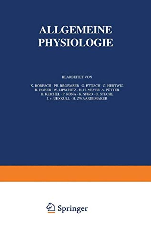 Definition des Lebens und des Organismus.- I. Definition des Lebens.- II. Beschreibung des Organismus.- Übersicht über die chemischen Systeme des Organismus und ihre Fähigkeit, Energie zu liefern.- 1. Einleitung. — Die abbaufähigen chemischen Substanzen.- 2. Die Glykolyse.- 3. Die Oxydationen und Reduktionen.- 4. Energielieferung und Zellarbeit.- Die Fermente.- Über die Struktur der lebenden Substanz.- Struktur und Funktion.- Die Katalyse.- Reinigung der Fermente.- Maßeinheiten für die Fermentwirkung.- Kinetische Betrachtungen.- Spezifität.- Temperatureinfluß.- Ionenwirkungen.- Aktivatoren.- Fermentgifte.- Fermentsynthesen.- Einteilung der Fermente.- Die physikalische Chemie der kolloiden Systeme.- I. Die Grenzflächenerscheinungen.- II. Die kolloiden Systeme.- E. Die kolloiden Systeme (fest-flüssig) vom Charakter fester Körper (Hydrogele).- F. Die grundlegenden Erscheinungen an Hydrogelen.- Allgemeine Energetik des tierischen Lebens (Bioenergetik).- Energieinhalt von ruhenden physiologischen Systemen.- Die Bestandteile der inneren Energie eines isolierten Organstückes, eines überlebenden Organs und Organismus als Bion.- Anwendbarkeit der energetischen Prinzipien in der Physiologie.- Zweites Hauptgesetz der Thermodynamik.- Das Problem der freien Energie.- Quantenhafte Energieübertragungen.- Energetische Gleichgewichte im Organismus.- Stationärer Metabolismus.- Die Kreisprozesse der lebendigen Systeme.- Die Zustandsvergleichungen.- Das Leben eine Summe von Kreisprozessen, superponiert aui einem offenen Prozeß.- Erregbarkeit, Reiz- und Erregungsleitung, allgemeine Gesetze der Erregung.- 1. Definition der Erregbarkeit, des Reizes, der Erregungsleitung und der Reizleitung.- 2. Allgemeine Wirkungen und Qualitäten der Reize.- 3. Das Wesen desErregungsVorganges.- Allgemeine Lebensbedingungen.- I. Begriffliches.- II. Die Nahrung.- III. Das Wasser.- IV. Salze.- V. Temperatur.- VI. Der Lebensraum.- Der Stoffaustausch zwischen Protoplast und Umgebung.- I. Problemstellung.- II. Die Zelle als Osmometer.- III. Permeabilität und Plasmolyse.- IV. Die Methoden der Permeabilitätsmessung.- V. Die Permeabilität für Nichtleiter.- VI. Die Permeabilitätstheorien.- VII. Die Permeabilität für Farbstoffe.- VIII. Die Permeabilität für Salze, Säuren und Basen.- IX. Permeabilität und Funktion.- X. Experimentelle Permeabilitätsänderungen.- Ionenwirkungen und Antagonismus der Ionen.- Die Ionen im Körper.- Ionenwirkungen auf Zellen und Gewebe.- Die Narkose und ihre allgemeine Theorie.- Protoplasmagifte.- Die wichtigsten Protoplasmagifte.- Die funktionelle Bedeutung der Zellstrukturen mit besonderer Berücksichtigung des Kernes und seiner Rolle im Leben der Zelle.- 1. Die Zelle, das einfachste bisher bekannte biologische System; seine dualistische Gliederung in Kern und Cytoplasma.- 2. Die morphologische Struktur der Zelle und ihre funktionelle Bedeutung, die Protomerentheorie.- 3. Der artspezifische Bau der Zelle.- 4. Quantitative Wechselwirkungen zwischen Karyoplasma und Cytoplasma.- 5. Qualitative Wechselwirkungen zwischen Karyoplasma und Cytoplasma.- 6. Experimente, aus denen sich auf eine Wechselwirkung von Kern und Cytoplasma schließen läßt.- 7. Die Rolle des Kerns im Entwicklungsprozeß.- Arbeitsteilung bei „höheren“ Organismen.- 1. Arbeitsteilung und Differenzierung.- 2. Zentralisation.- 3. Einschränkung der Leistungsbreite der einzelnen Individuen.- 4. Finale und kausale Begreifbarkeit von Differenzierung und Zentralisation.- Parasitismus und Symbiose.- 1. Parasitismus.- 2. Symbiose.- Die Einpassung.-Kreislauf der Stoffe in der Natur.- und Allgemeines.- Der Kreislauf des Wassers.- Der Kreislauf des Wasserstoffes.- Der Kreislauf des Sauerstoffes.- Der Kreislauf des Kohlenstoffes.- Der Kreislauf des Stickstoffes.- Der Kreislauf des Schwefels.- Der Kreislauf des Phosphors.- Der Kreislauf der übrigen Elemente.