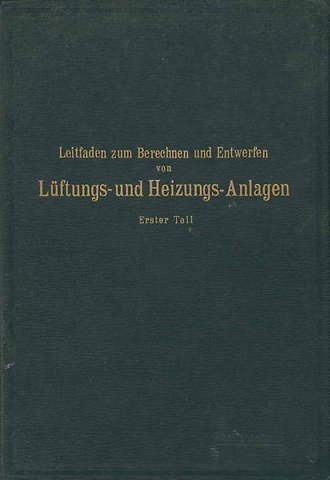 Erster Teil. Lüftung.- Erstes Kapitel. Einige Eigenschaften der Luft.- 1. Zusammensetzung der Luft (3)..- — 2. Ausdehnung der Luft (3)..- — 3. Druck der Luft (4)..- — 4. Gewicht der Luft (4)..- — 5. Erwärmung oder Kühlung der Luft (5)..- — 6. Mischung verschiedener Luftmengen (5)..- — 7. Wassergehalt der Luft (5)..- Zweites Kapitel. Notwendigkeit des Luftwechsels.- 1. Wärmeabgabe der Menschen und der Beleuchtung (7)..- — 2. Ausscheidung von Wasserdampf durch die Menschen (8)..- — 3. Ausscheidung organischer Produkte durch Ausatmung und Ausdünstung der Menschen. Beseitigung von Gerüchen durch Ozon (10)..- — 4. Ausscheidung von Kohlensäure (12)..- Drittes Kapitel. Größe des Luftwechsels.- I. Berechnung des Luftwechsels.- 1. Berechnung des Luftwechsels unter Zugrundelegung einer nicht zu überschreitenden Temperatur (14)..- — 2. Berechnung des Luftwechsels unter Zugrundelegung eines nicht zu überschreitenden Feuchtigkeitsgehaltes (16)..- — 3. Berechnung des Luftwechsels unter Zugrundelegung der Kohlensäureentwicklung der Menschen und der Beleuchtung (18)..- — 4. Berechnung des Luftwechsels unter Zugrundelegung von Erfahrungssätzen (20)..- II. Anwendung der Berechnung des Luftwechsels in der Praxis.- 1. Die Berechnung des Luftwechsels unter Zugrundelegung einer nicht zu überschreitenden Temperatur (21)..- — 2. Die Berechnung des Luftwechsels unter Zugrundelegung eines nicht zu überschreitenden Feuchtigkeitsgehaltes (21)..- — 3. Die Berechnung des Luftwechsels unter Zugrundelegung der Kohlensäureentwicklung der Menschen und der Beleuchtung (22)..- — 4. Die Berechnung des Luftwechsels unter Zugrundelegung von Erfahrungssätzen (23)..- III. Beispiele für Bestimmung der Größe des Luftwechsels.- Viertes Kapitel. Erzielung des Luftwechsels.- I. Natürliche Lüftung.- II. Künstliche (absichtliche) Lüftung.- Allgemeine Anordnung und Einteilung der Lüftungsanlagen: a) Zuleitung reiner Luft (31). — b) Ableitung verbrauchter Luft (32)..- Fünftes Kapitel. Anordnung, Ausführung und Bestimmung der einzelnen Teile bzw. Größen einer Lüftungsanlage.- I. Entnahme der frischen Luft.- II. Reinigung der Luft.- 1. Staubkammern (34)..- — 2. Staubfänger (34)..- — 3. Filter (35)..- — 4. Waschen der Luft (36)..- III. Befeuchtung der Luft.- 1. Einrichtungen zur Befeuchtung (37)..- — A. Örtliche Befeuchtung (38)..- — B. Gemeinsame Befeuchtung: a) Apparate, abhängig von der Wärme des Heizapparates für Erwärmung der Zuluft (38)..- — b) Apparate, unabhängig von der Wärme des Heizapparates für Erwärmung der Zuluft (39)..- — 2. Bestimmung der erforderlichen Wassermenge (40)..- — Beispiel (41)..- IV. Trocknung der Luft.- V. Mittel für die Bewegung der Luft.- A. Erwärmung der Luft: 1. Einrichtungen zur Erwärmung (41)..- — 2. Temperaturen der Luft: a) Temperatur der Außenluft (42)..- — b) Temperatur der zu lüftenden Räume (43)..- — c) Temperatur der Zuluft (44)..- — d) Temperatur der Abluft (45)..- — e) Wärme zur Erwärmung der Abluft (46)..- — Beispiele für Bestimmung der Ablufttemperatur (49)..- — B. Druck- und Saugeapparate: 1. Apparate zur Nutzbarmachung des Winddrucks (54). — 2. Ventilatoren: a) Strahlapparate (56)..- — b) Schraubenventilatoren (56)..- — c) Zentrifugalventilatoren (57)..- — d) Anordnung der Ventilatoren (58)..- — e) Wahl der Größe eines Ventilators (59)..- — f) Bestimmung der Betriebskraft eines Ventilators (60)..- — g) Beispiel für Wahl der Größe eines Ventilators und für Bestimmung der Betriebskraft (61)..- VI. Kanäle.- 1. Anordnung der Zuluftkanäle (61)..- — 2. Einströmung der Luft in die Räume und Abströmung der Luft aus den Räumen (63)..- — 3. Anordnung der Abluftkanäle (72)..- — 4. Ausführung der Kanäle (74)..- — 5. Berechnung der Kanäle: a) Erforderliche Geschwindigkeit (75)..- — b) Erreichbare Geschwindigkeit (75)..- — c) Lösung der Gleichungen (84)..- — d) Bestimmung der Bewegungswiderstände: ?) Widerstand durch Filter (85)..- — ?) Widerstand durch Reibung und einmalige Widerstände (86)..- Sechstes Kapitel. Entwerfen und Berechnen von Lüftungsanlagen.- I. Aufstellung der Forderungen.- II. Wahl des Lüftungssystems.- 1. Die höchste äußere Temperatur, bis zu der der Luftwechsel gefordert wird (91)..- — 2. Die in den zu lüftenden Räumen einzuhaltenden Druckverhältnisse (91)..- III. Entwurf und Berechnung einer Lüftungsanlage.- IV. Berechnung der Lüftungsanlagen in der Praxis.- a) Berechnung der Anlagen für den Kostenanschlag (98)..- — b) Berechnung der Anlagen für die Ausführung (98)..- V. Beispiele für die Berechnung von Lüftungsanlagen.- A. Lüftung mittels Temperaturdifferenz ohne besondere Erwärmung der Abluft: 1. Abluft- und Zuluftanlage erfahren getrennte Berechnung. Die Grenzebene der beiden Anlagen bildet die neutrale Zone (100)..- — 2. Abluft- und Zuluftanlage erfahren gemeinsame Berechnung (110)..- — B. Saugelüftung: 1. Lüftung mittels Temperaturdifferenz unter besonderer Erwärmung der Abluft (112)..- —2. Lüftung mittels eines Exhaustors (115)..- — C. Drucklüftung: 1. Abluft- und Zuluftanlage erfahren getrennte Berechnung. In der Grenzebene der beiden Anlagen soll ein Überdruck von 2 m Luftsäule von 0° herrschen (116)..- — 2. Abluft- und Zuluftanlage erfahren gemeinsame Berechnung (119)..- Heizung.- Siebentes Kapitel. Entwicklung und Nutzbarmachung der Wärme.- I. Brennstoffe.- II. Verbrennung und Wärmeentwicklung.- 1. Rost und Aschfall (125)..- — 2. Verbrennungsraum (127)..- — 3. Regelung der Verbrennung (128)..- — 4. Rauchbildung: a) Besondere Form und Stellung des Rostes (129)..- — b) Allmähliche Einführung des Brennmaterials (129)..- — c) Zuführung erwärmter Luft über oder hinter der Feuerbrücke (130)..- — d) Anordnung mehrerer neben-, hinter- oder übereinander liegender Roste (130). — e) Umkehrung des Zugs (130)..- — f) Besondere Zubereitung des Brennmaterials (130)..- —
