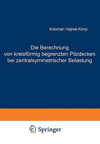 I. Einleitung.- II. Beschreibung des allgemeinen Rechnungsganges. Grundlagen und Voraussetzungen.- III. Ermittlung der Formänderungsgrößen ?.- A. Die Durchbiegungen ?ii, ?ik.- 1. Superposition der Föpplschen Reihe.- 2. Die Funktionen Ro, Rn bzw. ?o, ?n.- 3. Konvergenz der Reihen für ?.- 4. Berechnung der ?-Werte.- B. Die Durchbiegungen ?i.- 1. Vollbelastung.- 2. Teilweise (kreis- oder kreisringförmige) Belastung.- Zahlenbeispiel.- IV. Ermittlung der Momente.- A. Die Momente mg.- 1. Vollbelastung.- 2. Teilweise Belastung.- B. Die Momente m1 … mn.- 1. Reihenentwicklung.- 2. Einfluß des Gliedes Ro.- 3. Einfluß der Glieder Rn cos n ?, R’n cos n ?.- 4. Der Grenzdall ? = 1.- V. Verallgemeinerung der Lösung. Schlußbetrachtungen.- A. Die am Rande fest eingespannte, kreisförmig begrenzte Pilzdecke.- B. Berücksichtigung einer elastischen Einspannung.- C. Berücksichtigung einer biegungsfesten Verbindung mit den Innenstützen.- D. Der Einfluß der Breite der Stützfläche.- E. Querkräfte.- F. Der Fall einer exzentrischen Einzellast.- G. Das Verfahren von Dr. Flügge. Vergleich an Hand eines Zahlenbeispiels.- H. Kurze Zusammenfassung des Rechnungsganges.- VI. Tabellen.- Literatur.