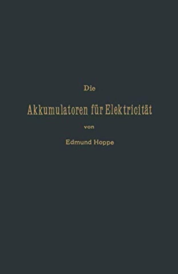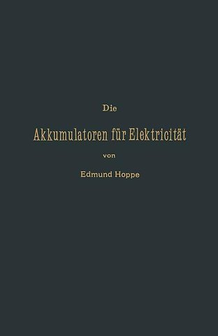 I. Die Vorgeschichte der Akkumulatoren.- 1. Einleitung.- A. Elektrolyse und Stromerzeugung’ im Element.- 2. Entdeckung der chemischen Wirkung des Stromes.- 3. Ritter’s Beobachtung.- 4. Nicholsons und Carlisle’s Zersetzungen.- 5. Ritter’s Nachweis der Wasserzersetzung.- 6. Chemische. Theorie der Zersetzung.- 7. Ritter’s Konstruktion der Säule.- 8. Ritter entdeckt das Spannungsgesetz.- 9. Messende Versuche.- 10. Sekundäre Vorgänge bei der Zersetzung.- 11. Kampf um die Wasserzersetzung.- 12. Ritter’s erste Theorie.- 13. Nichtzersetzbarkeit des Wassers nachgewiesen.- 14. Die verschiedenen Theorien der Zersetzung.- 15. Grotthus’ Theorie.- 16. Davy’s Theorie der Elektrochemie.- 17. Berzelius’ Theorie.- 18. Die elektrochemische Reihe.- 19. Ampere’s Theorie.- 20. Schweigger’s Theorie.- 21. Fechner’s Theorie.- 22. Theorie von de la Rive, Becquerel etc.- 23. Gmelin’s Theorie.- 24. Resultate aus Faraday’s Experimenten.- 25. Faraday’s Definition über den Strom und Theorie der Zersetzung.- 26. Faraday’s Bezeichnung.- 27. Faraday’s Gesetze.- 28. Faraday’s Stellung zum Kontakt.- 29. Verhältniss der chemischen Aktion zur erzeugten Elektricitätsmenge.- 30. Heidtmann’s Theorie.- 31. Das Gesetz der Erhaltung der Energie und die Stromerzeugung.- 32. Die Kontaktkraft nach v. Helmholtz.- 33. R. Kohlrausch’s Theorie der Elektrolyse.- 34. Daniell’s Ansicht.- 35. Magnus’ Theorie.- 36. Bedenken gegen Magnus.- 37. Wanderung der Ionen.- 38. Hittorf’s Erklärung.- 39. Clausius’ Theorie.- 40. Ozon.- 41. Wasserstoffsuperoxyd.- 42. Aktiver und inaktiver Wasserstoff.- 43. Schönbein’s Theorie.- 44. Wiedemann’s Theorie.- 45. Stromerzeugung nach Schönbein.- 46. Stromerzeugung nach Wiedemann.- 47. Stromarbeit und chemische Arbeit.- 48. Das Daniell’sche Element.- 49. Neuere Entdeckungen.- 50. F. Kohlrausch’s Messung des Leitvermögens.- 51. Leitfähigkeit mehrwerthiger Ionen.- 52. Tabelle der Leitfähigkeit von Lösungen.- 53. Molekulargewichte.- 54. Der osmotische Druck.- 55. Arrhenius’ Dissociationsgesetz.- 56. Anwendung auf die Elektrolyse.- 57. Wanderungsgeschwindigkeiten.- 58. Einfluss der Temperatur.- Stromerzeugung.- 59. Nernst’s Theorie der Flüssigkeitsketten.- 60. Theorie der galvanischen Elemente.- 61. Spannungsreihe.- 62. Reversible und irreversible Vorgänge.- B. Sekundäre Vorgänge im Element und der Zersetzungszelle.- 63. Sekundäre Erscheinungen.- 64. Polarisation und Uebergangswiderstand a) Allgemeine Resultate.- 65. Gaspolarisation und Elektrodenveränderung.- 66. Erste Beobachtung der Polarisation.- 67. Gautherot’s Experiment.- 68. Ritter’s Polarisationszelle.- 69. Ritter’s Ladungssäule.- 70. Theorie der Polarisation.- 71. Volta’s Theorie.- 72. Unipolare Leitung.- 73. Uebergangswiderstand.- 74. Ohm’s Erklärung.- 75. Lenz’ Untersuchungen.- 76. Das Ohmsche Gesetz.- b) Gaspolarisation.- 77. Lenz’ Gesetze.- 78. Messmethoden.- 79. Schaltung der Zellen.- 80. Poggendorffsehe Wippe.- 81. Müller’s Kommutator.- 82. Neuere Methoden.- 83. Gesetze der Gaspolarisation.- 84. Einfluss der Elektroden.- 85. Einfluss des Elektrolyten.- 86. Mechanische und chemische Einflüsse.- 87. Okklusion.- 88. Theorie der Polarisation.- 89. Störungen.- 90. Haftintensität und Zersetzungswerthe.- 91. Polarisationskapazität.- c) Polarisation durch Neubildung an den Elektrodenplatten.- 92. Dauerhafte Ueberzüge.- 93. Avagadro’sche Umkehrungen.- 94. Fechner’s Untersuchungen.- 95. Daniell’s Polarisationsbatterie.- 96. Wheatstone’s Untersuchung mit Superoxyd.- 97. Sinsteden’s Untersuchungen.- II. Die Konstruktion der Akkumulatoren.- 98. Planté’s erste Konstruktion.- 99. Planté’s Theorie.- 100. Die Formirung.- 101. Faure’s deutsches Patent.- A. Akkumulatoren mit reinen Bleiplatten.- 102. Volkmar’s Gitter.- 103. Tommasi.- 104. Elwell-Parker.- 105. De Kabath.- 106. Pitkin, Schönemann, de Changy.- 107. Jones, Bailly, Dujardin.- 108. Gläsener.- 109. Elieson.- 110. Verbesserungs Vorschläge von Planté.- 111. Bandsept.- 112. Poröse Bleiplatten.- 113. Reynier.- 114. Formirungsverfahren von Lukow.- B. Akkumulatoren mit Bleiverbindungen als Füllmasse.- 115. Akkumulatoren mit Kohle.- 116. Schwefelblei.- 117. Bleischwamm.- 118. Akkumulator mit Mangan.- 119. Watt-Akkumulator.- 120. Quecksilber.- 121. Legierungen.- 122. De Khotinsky.- 123. Brush.- 124. Metallsalze in Lösungen.- 125. Tudor.- 126. Mennige mit anderen Substanzen gemischt.- 127. Bleisuperoxydplatten.- 128. Metallodium.- 129. Verschiedenartige Träger.- 130. Muldenförmige Gitter.- 131. Verschiedenartige Platten.- 132. Faure-Sellon-Volkmar.- 133. Farbaky und Schenek.- 134. Analoge Platten mit Füllmasse.- 135. Correns.- 136. Hagen.- 137. Masseplatten.- 138. Clas und Weyde.- 139. Schoop.- 140. Dr. Wershoven.- 141. Weise.- 142. Besondere Anordnung der Füllmasse.- 143. Pollak.- 144. Kohlenwasserstoffverbindungen.- C. Akkumulatoren mit verschiedenartigen oder indifferenten Elektroden.- 145. Kirchhof und Benjamin.- 146. Zink-Akkumulator.- 147. Kupfer-, Eisen- und andere Platten S. 213..- 148. Lithanod- Platten.- 149. Akkumulator Heyl S..- 150. Verschiedene Platten u. Lösungen.- 151. Thermoakkumulator.- 152. Patent-Tabelle.- III. Wissenschaftliche Untersuchungen über Akkumulatoren.- A. Allgemeines.- 153. Theorie von Gladstone und Tribe.- a) Die Theorie der Stromerzeugung.- 154. Specifisches Gewicht der Säure.- 155. Das Bleisulfat.- 156. Frankland’s Theorie.- 157. Ayrton’s Untersuchungen.- 158. Aron’s Theorie.- 159. Theorie von Streintz.- 160. Der chemische Vorgang beim Laden und Entladen.- 161. Die Theorie Darrieus.- 162. Die Theorie von Elbs und Schönherr.- 163. Die Theorie le Blanc.- 164. Die Liebenow.- 165. Bleiakkumulatoren mit Zusätzen anderer Körper.- 166. Der Kupfer-Zink-Akkumulator.- 167. Aluminiumakkumulator.- b) Nutzeffekt.- 168. Der Nutzeffekt.- 169. Aeltere Untersuchungen.- 170. Joulesche Wärme.- 171. Untersuchung von Hallwachs.- 172. Aron’s Bestimmung.- 173. 