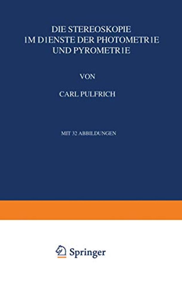 Anwendungen der neuen Methode.- 14. Apparate für spektral unzerlegtes Licht, bei denen die Projektionsbilder der Marken oder diese selbst beidäugig betrachtet werden.- 15. Anwendung von Doppelfernrohren und Ersatz der Marken durch die stereoskopischen Halbbildmarken.- 16. Die Anpassung der Okulare an den Augenabstand des Beobachters.- 17. Die beim Doppelfernrohr zur Messung der Helligkeiten dienende Vorrichtung, erläutert an einem Stereophotometer, das für den Vergleich zweier Lichtquellen bestimmt ist.- 18. Einige weitere Photometerkonstruktionen für Helligkeitsmessungen im spektral unzerlegten Licht.- 19. Abhängigkeit der Messungsresultate an Farbfiltern von der zur Beleuchtung der Objekte dienenden sog. weißen Lichtquelle.- 20. Das Stereophotometer im Dienste der Pyrometrie.- 21. Apparat zur Bestimmung derjenigen Stelle im Spektrum einer Lichtquelle, welche das Spektrum in zwei physiologisch gleich helle Teile zerlegt. 2. Apparat zum Haibieren eines Spektrums.- 22. Das Stereospektralphotometer.- 23. Die Regulierung der Beleuchtung.- 24. Verlauf der Erscheinung beim Vergleich einer Farbe mit den übrigen Teilen des Spektrums einer Petroleumlampe.- 25. Was tritt ein,, wenn man mit dem einen Auge die Grenzen des sichtbaren Spektrums überschreitet?.- 26. Messung der Helligkeit in den einzelnen Spektralbezirken als Bruchteil des Helligkeitsmaximums als Einheit.- 27. Reduktion der gemessenen Helligkeitskurve auf das Normalspektrum.- 28. Ermittlung der Empfindlichkeitskurve des Auges.- 29. Helligkeitsmessungen im diskontinuierlichen Spektrum.- Schlußbemerkungen.