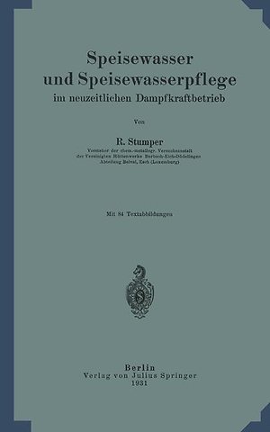 Erster Teil. Das Wasser.- I. Die Bedeutung des Wassers in der Dampftechnik.- A. Der Kesselstein.- 1. Die verschiedenen Kesselsteinarten.- 2. Die physikalisch-chemischen Vorgänge bei der Kesselsteinbildung.- 3. Die Bedeutung des Kesselsteines.- a) Verminderung der Wirtschaftlichkeit.- b) Erhöhung der Kesselblechtemperatur.- c) Anfressungen der Kesselbleche unterhalb von Steinbelagen.- d) Abplatzen von Steinkrusten während des Betriebes.- e) Beschädigung der Bleche beim Entfernen des Kesselsteins.- B. Der Kesselschlamm.- C. Die Korrosion der Baustoffe.- 1. Anfressungen durch freie Säuren.- 2. Anfressungen durch gelöste Gase.- 3. Anfressungen durch hydrolytisch gespaltene Salze.- 4. Anfressungen durch Wärmestauungen.- 5. Anfressungen durch Lokalströme.- 6. Anfressungen durch Potentialdifferenzen auf kleinster Fläche.- 7. Anfressungen durch Kaltbearbeitung.- 8. Anfressungen durch Dampfspaltung.- D. Die Verzunderung der Überhitzerrohre durch reinen oder unreinen Dampf.- E. Die Laugensprödigkeit.- F. Spucken und Schäumen des Kesselinhaltes.- II. Die Verunreinigungen des Speisewassers und ihreEin-flüsseimDampfkesselbetrieb.- A. Grobdisperse Verunreinigungen.- B. Kolloide Verunreinigungen.- C. Molekulardisperse Verunreinigungen.- 1. Gase.- a) Die Rolle der Kohlensäure.- b) Die Rolle des Sauerstoffes.- 2. Salze.- a) Gips.- b) Kalziumbikarbonat.- c) Magnesiumbikarbonat.- d) Thermisch beständige Magnesiumsalze.- e) Chloride und Nitrate.- III. Anforderungen an die im Dampfkraftbetrieb gebrauchtenWässer.- A. Kesselspeisewasser.- 1. Speisewasser.- 2. Zusatzwasser.- 3. Kondensat und Destillat.- B. Kesselwasser.- 1. Härte.- 2. Dichte.- 3. Natronzahl.- 4. Soda-Suifat-Verhältnis.- 5. Kieselsäure.- C. Wasser für Verdampfer.- D. Kühlwasser für Kondensatoren.- Zweiter Teil. Die Wasserpflege.- Die Aufbereitung des Wassers.- I. Entfernung der grobdispersen Verunreinigung.- A. Siebverfahren.- B. Absetzverfahren.- C. Filterverfahren.- II. Entfernung der kolloidalen Verunreinigungen.- III. Entkieselung.- IV. Entfernung der molekulardispersen Verunreinigungen.- A. Entsalzen.- 1. Das Verdampfverfahren.- a) Allgemeines.- b) Ausführungsarten.- 1. Vakuumverdampfer.- 2. Niederdruckverdampfer.- 3. Hochdruckverdampfer.- 2. Die elektro-osmotische Entsalzung.- B. Enthärten.- 1. Die thermische Enthärtung.- 2. Die chemische Enthärtung.- a) Die Ausfällungsverfahren.- 1. Kalk-Soda-Verfahren.- 2. Ätznatron-Verfahren.- 3. Soda-Verfahren mit Kesselwasser-Rückführung.- 4. Wege zur Verbesserung der Ausfällungsverfahren.- b) Das Austausch-Verfahren (Permutit).- C. Das Impf-Verfahren.- D. Die Entgasung.- 1. Allgemeines.- 2. Ausführungen der Entgasung.- 3. Gasschutz.- V. Behandlung des Kesselwassers.- A. Verschiebung der chemischen Gleichgewichte (Korrektivverfahren).- B. Kolloidchemische Verfahren.- C. Mechanische Verfahren.- D. Elektrolyt-Kesselschutz.- E. Entsalzen des Kesselinhaltes.- VI. Richtlinien zur Beurteilung der Wässer und zur Auswahl der passenden Verfahren.- A. Einteilung und Beurteilung der Wässer.- B. Eignung der verschiedenen Enthärtungsverfahren.- VII. Kurze Anleitung zur chemischen Prüfung der Wässer in der Dampftechnik.- Schlußwort.