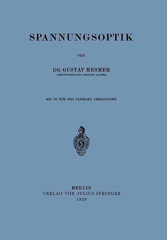 $$ in zirkularpolarisiertem Arbeitsfeld zwischen gekreuzten Polarisatoren.- 3. Messung der Relativverzögerung.- a) Kompensation mittels zweiten Körpers gleicher Neigung. b) Messung von m aus der Neigung ?m linearen Lichtes (vgl. II, 2a). c) Abzählung von Verdunkelungen. d) Interferometer.- 4. Vielfarbiges Licht.- Wellenlängen ? und Frequenzen der Farben. Verzögerung Z = m ?. Wirkung bei gekreuzten Polarisatoren. Farbauslöschung. Sichtbare Farbreihenfolge. Empfindliche Farbe. Analyse des Lichtes bei gegebener spektraler Energieverteilung der Lichtquelle.- III. Grundtatsachen der ebenen Spannungsoptik.- 1. Grundgleichungen.- Kristalleigenschaften eines gespannten ursprünglich isotropen Körpers. Geschwindigkeiten der Lichtkomponenten im Körper. Verzögerung infolge von ?1 und ?2 im Körper der Dicke d. Gegenseitige Verzögerung m = d · K · (?1 — ?2). Verschwindende Wirkung kleiner Dickenschwankungen.- 2. Die Farbgleichen.- Linien gleicher Farben oder gleicher Hauptschubspannung in einer Scheibe.- 3. Die Richtungsgleichen.- Linien gleicher Hauptrichtung in einer Scheibe.- 4. Schubfreie Punkte und Linien.- Optisches Verhalten der in I,6 beschriebenen Punkte.- 5. Randbedingungen.- Hauptrichtungen und Hauptspannungen an einem freien oder bekannt belasteten Rand.- IV. Die vollständige Bestimmung des Spannungsfeldes.- 1. Verfahren, die auf unmittelbarer Messung von (?1 + ?2) beruhen.- Messung der zu (?1 + ?2) verhältnisgleichen Dickenänderung einer Scheibe. a) mechanisch, b) mechanisch-optisch, c) mechanisch-interferenzoptisch, d) interferenzoptisch, e) mechanisch-elektrisch.- 2. Verfahren, die auf den Feldeigenschaften von S = (?1 + ?2) beruhen.- Potentialgleichung ?S = 0. Eigenschaften der Potentiallinien. Messung der Potentiale bei gegebenen Randwerten. a) Elektrisches Potential. b) Seifen- oder Gummihautgleichnis. c) Graphische Lösung nach Neuber.- 3. Verfahren der Integration von bekannten Randpunkten her.- Formulierung der Gleichgewichtsgleichung in Differenzenform für schrittweise Integration a) in gradlinigem (cartesischem) Netz, b) längs der Hauptlinien, c) längs der Hauptschublinien, d) längs Hilfslinienelementen nach Föppl.- 4. Verfahren des punktweisen Anbohrens.- Spannungen am Rand eines kleinen runden Loches. Störspannungen infolge dieses Loches.- 5. Einzelmessung von ?1 und ?2 mittels Interferenzerscheinungen.- Verfahren von Favre (Interferometer), Fabry (Linienzählung in halbversilbertem Modell) und Tank.- 6. Abschätzungen.- V. Geräte.- 1. Lichtquellen.- Bogenlampen, Punktlichtlampen, Dampflampen.- 2. Polarisatoren.- a) Polarisation durch Spiegelung unter dem Brewsterschen Winkel i = arctg n. Glasplattensatz. b) Polarisation durch Doppelbrechung. Nikol-Prisma. Ahrens-Prisma. Totale Reflexion. c) Polarisationsfilter aus dichroitischen Kristallen, die eine Lichtkomponente verschlucken. Herapatit. Bernotar. Polaroid.- 3. Einfache spannungsoptische Einrichtung mit unveränderlicher Polarisationsebene.- Polarisation durch Spiegelung oder Glasplattensatz.- 4. Einrichtung für einfach durchstrahlte Modelle mit drehbarer Polarisationsebene.- Strahlverluste infolge spiegelnder Oberflächen. a) 1. Gekreuzte Polarisatoren für punktweise Beobachtung. 2. Große Polarisationsfilter für unmittelbare Betrachtung. b) Großer Polarisator, kleiner Analysator. c) Kleine Polarisatoren. Lichtstreuung durch Mattscheibe. Glasspannungsprüfer. d) Kleine Pollitrisatoren und eine große Linse. e) Zwei große Linsen mit parallelem Strahlenfeld. f) Paralleldurchstrahlung auch der kleinen Polarisatoren. g) Paralleldurchstrahlung eines zusätzlichen Körpers (Kompensator). h) Hohlspiegelanordnung mit gebrochenem Strahlengang.- 5. Anordnungen mit Strahlenreflexion zur zweimaligen Durchstrahlung von Modellen.- a) 1. Ebener Spiegel hinter dem Modell. 2. Hohlspiegel. 3. Mattspiegel oder Rückseitenbronzierung. b) Verwendung nur eines Polarisators für Hin- und Rückstrahl. c) Halbsilberspiegel im Polarisationsbereich. d) Mabboux-Gerät mit Polarisation durch Spiegelung.- 6. Zusätzliche Einrichtung zur Herstellung eines Zirkularfeldes.- Viertelwellenblättchen. Glimmerscheiben oder gepreßte Glasscheiben. Wirkung fehlerhafter Blättchen.- 7. Zusätzliche Einrichtung zur Aufnahme von Farbgleichen oder Richtungsgleichen.- Kamera, Linsenstellung. Schirmprojektion. Koordinatennetz.- 8. Kompensatoren.- Zugstab- und Biegestabkompensatoren. Kompensatoren nach Babinet und Ehringhaus. Einschwenkanordnung.- 9. Belastungseinrichtung.- Rahmen mit Gewichts- oder Federbelastung. Hebelpresse. Drehbare Rahmen.- 10. Interferometereinrichtung.- Skizze des Zeiss-Interferometers für spannungsoptische Zwecke.- 11. Allgemeine Bemerkungen zu den Geräten.- Gemeinsame Drehung der Polarisatoren. Abmessungen einer Einrichtung. Beispiele von Gesamteinrichtungen. Preise.- VI. Versuchstechnik und Auswertung.- 1. Prüfung und Justierung der optischen Einrichtung.- Justierung der Polarisatoren, der ?/4-Plättchen, des Kompensators.- 2. Werkstoffe, Modellherstellung.- Durchsichtigkeit, Elastizität, Steifigkeit, Doppelbrechung, Bearbeitbarkeit und Haltbarkeit der Stoffe. Kennzahlen von Glas, Plexiglas, Zelluloid, Cellon, Kunstharz;, Gummi, Gelatine. Einzelheiten für Gläser, Zelluloid und Cellon und Kunstharze (Härte, Ausheizen der Eigenspannungen, Zeitwirkung, Randeffekte, zwei Bestandteile). Herstellerfirmen.- 3. Aufnahme der Farbgleichen.- Zirkularpolarisiertes oder lineares Licht. Photographie. Belichtungszeit. Aufnahmen bei verschiedenen Laststufen. Zeitwirkung. Einfarbiges und weißes Licht. Zeichnerische Aufnahmen.- 4. Kompensation.- Zugstabkompensator aus Modellwerkstoff. Fehler bei Richtungsabweichung. Vorverspannte Modelle. Quarzdrehplattenkompensator nach Ehringhaus. Feldkompensation von Punkten neben der optischen Achse. Korrekturen. Einfarbiges und weißes Licht. Nebenlicht.- 5. Bestimmung von m mit Hilfe von ?/4-Blättchen.- Messung nach II,3b. Fehler infolge falschen Blättchens, falscher Blättchenne