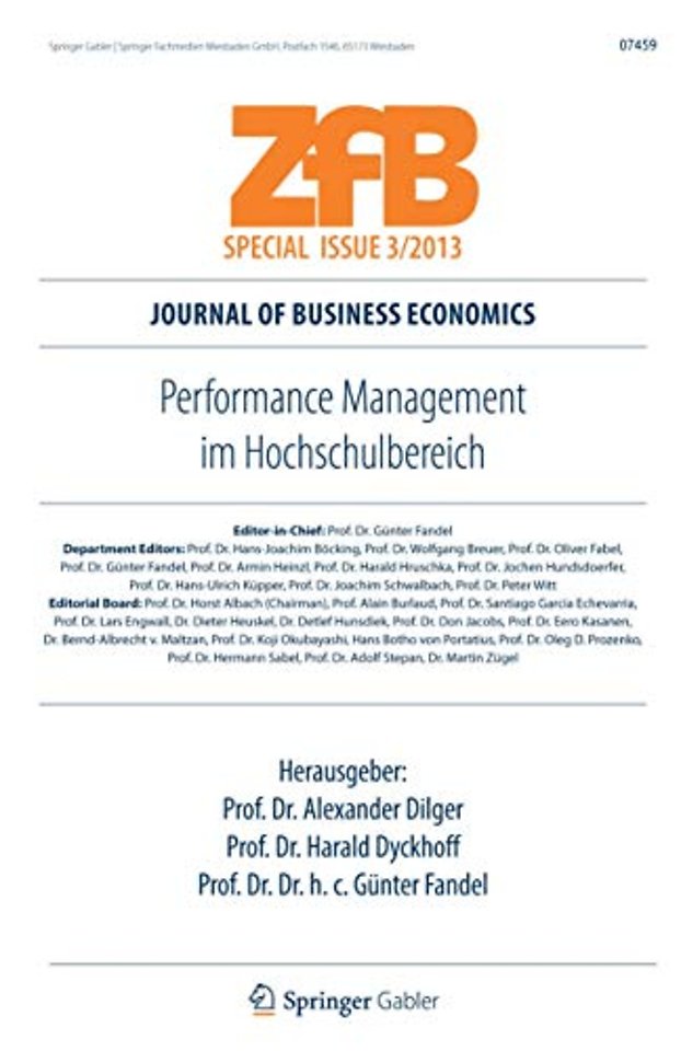 Dilger/Dyckhoff/Fandel (Hrsg.), Performance Management im Hochschulbereich (ZfB Special Issue 3)