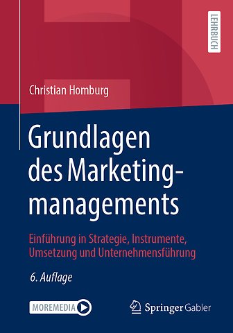 Der Leser erhält eine systematische Einführung in die Denkweisen, Konzepte, Methoden und Instrumente des Marketing. Christian Homburg vermittelt Studierenden und Praktikern in anschaulicher und kompakter Weise die Grundlagen des Marketingmanagements. Aufbau und Inhalt des Buches orientieren sich dabei an den sieben Perspektiven des Marketing.