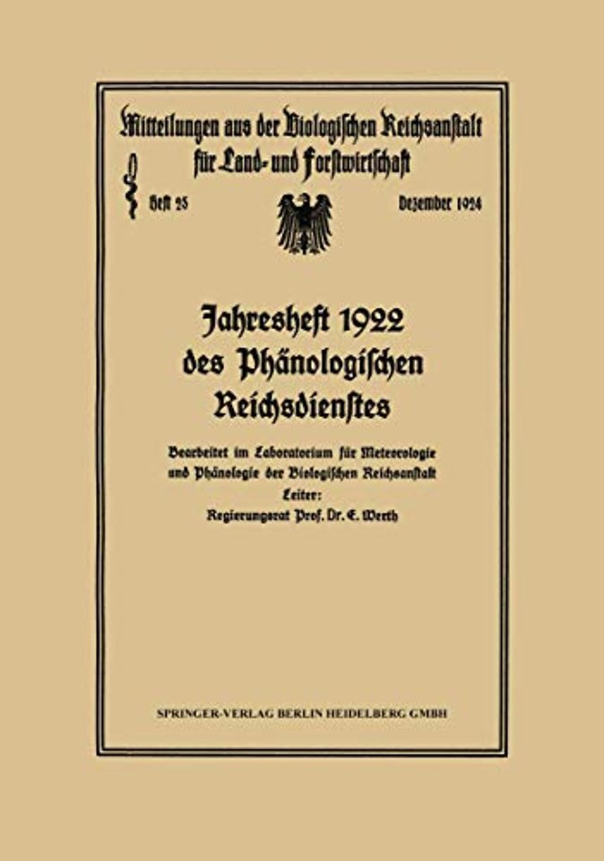 I. Beobachtungen des Phänologischen Reichsdienstes im Jahre 1992.- II. Untersuchungen über den Einfluß der Witterung auf die Phänologie von Apfelbaum und Winterroggen.- A. Zur Frage der Abhängigkeit des Eintritts der Apfelblüte von ben klimatischen Faktoren.- B. Einfluß der Witterung auf Roggenblüte und Roggenernte.- Roggenblüte.- Roggenernte.