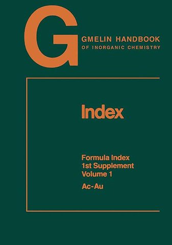 The GmeLin FormuLa Index published between 1975 and 1980 covered aLL voLumes of the Eighth Edition of the GmeLin Handbook that had appeared up to the end of 1974 in the case of Main VoLumes and up to the end of 1973 in the case of SuppLement VoLumes. The GmeLin FormuLa Index, First SuppLement, continues from there and covers the handbook voLumes published up to the end of 1979. This First SuppLement wiLL consist of eight voLumes, which wiLL appear at intervaLs of four to six months. The basic structure of the FormuLa Index has been fully retained in the First Supplement: The index Lists aLL eLements, compounds, ions, and systems having definite composition that are described in the handbook text. The first coLumn gives the empiricaL formuLa, whiLe the second gives the conventionaL formuLa. The third coLumn Lists the pertinent pages. (The detaiLs are avaiLabLe in "Instructions for the FormuLa Index", on the next pages. ) This First SuppLement was prepared and printed with extensive use of computers. In the future this wiLL allow publication of cumuLative indexes. The procedures were worked out together with the TechnicaL Section of the Gesellschaft fUr Information und Dokumentation mbH (GID), Frankfurt, and I take this occasion to thank them for their generous help. I wouLd aLso Like to thank our printers, Universitatsdruckerei H. SWrtz AG, WOrzburg, for their advice and cooperation.