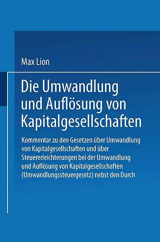 Kommentar zu den Gesetzen über Umwandlung von Kapitalgesellschaften und über Steuererleichterungen bei der Umwandlung und Auflösung von Kapitalgesellschaften (Umwandlungssteuergesetz) nebst den Durchführungsbestimungen