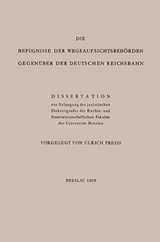 Inhaltsübersicht.- Einleitung: Der Aufbau der Arbeit.- A. Allgemeiner Teil.- B. Besonderer Teil. Die Befugnisse der Wegeaufsichtbehörde gegenüber der Deutschen Reichsbahn.