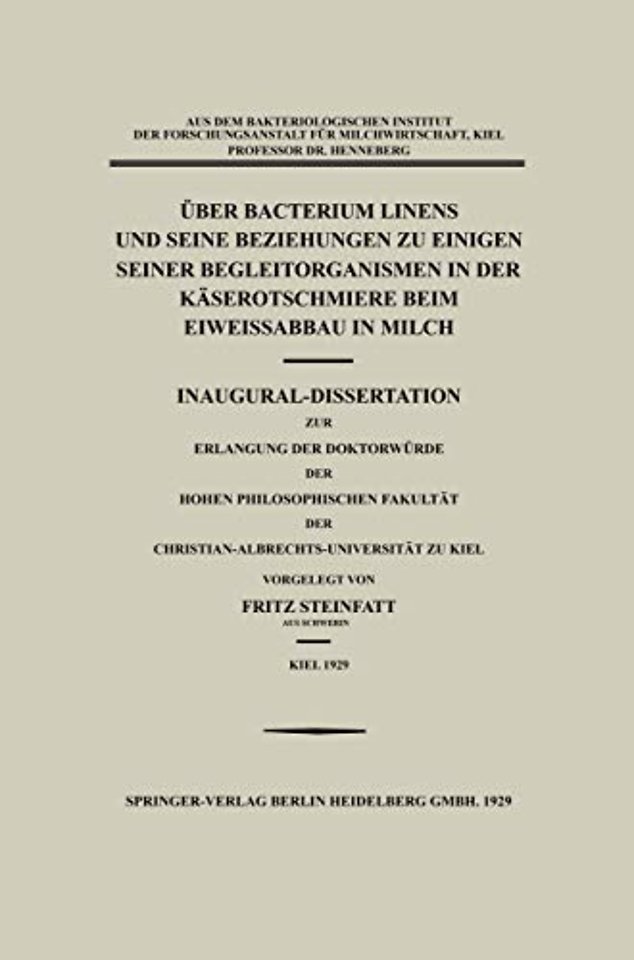 Über Bacterium Linens und Seine Beziehungen zu Einigen Seiner Begleitorganismen in der Käserotschmiere beim Eiweissabbau in Milch