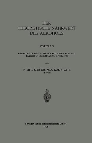 Vortrag Gehalten in den Wissenschaftlichen Alkoholkursen in Berlin am 24. April 1908