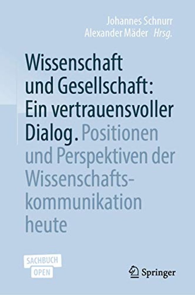 Für das Buch Wissenschaft und Gesellschaft: Ein vertrauensvoller Dialog. Positionen und Perspektiven der Wissenschaftskommunikation heute baten die Herausgeber – Dr. Johannes Schnurr (Pressesprecher der Daimler und Benz Stiftung) und Prof. Dr. Alexander Mäder (Professor für digitalen Nachrichtenjournalismus an der Hochschule der Medien in Stuttgart) – Journalisten und Öffentlichkeitsarbeiter, Wissenschaftler, Blogger sowie Vertreter von Stiftungen und Forschungseinrichtungen, zu erläutern, wie sie sich – persönlich – diesem gesamtgesellschaftlichen Trend zur reinen Meinung entgegenstellen und mit welchen Methoden sie das öffentliche Ansehen der Wissenschaft stärken möchten. Der Band beleuchtet die aktuelle Situation aus der Perspektive unterschiedlicher Interessenvertreter in diesen Bereichen und sucht neben einer Bestandsaufnahme nach Lösungsansätzen.
