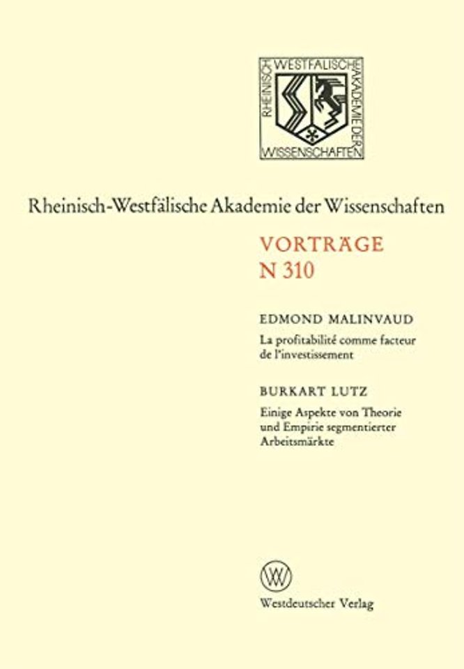La profitabilité comme facteur de l#x2019;investissement.- Einige Aspekte von Theorie und Empirie segmentierter Arbeitsmärkte.- Diskussionsbeiträge.