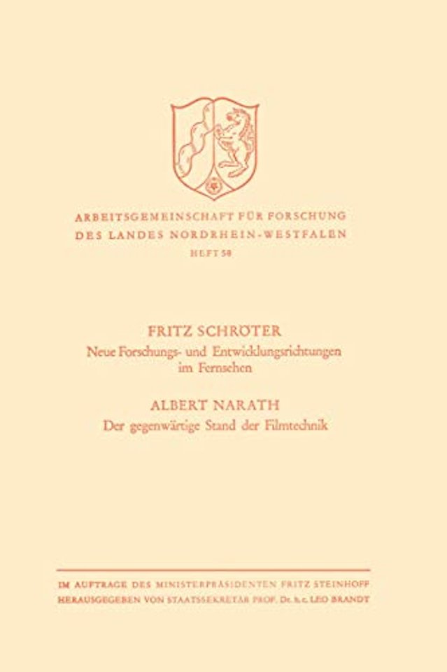 Neue Forschungs- und Entwicklungsrichtungen im Fernsehen.- Diskussionsbeiträge von Staatssekretär Prof. Dr. h. c. Leo Brandt, Prof. Dr. phil. Fritz Schröter, Prof. Dr. phil. Burckhardt Helferich, Prof. Dr. rer. nat. Wilhelm Groth, Prof. Dr.-Ing. Bodo von Borries, Prof. Dr. phil. Friedrich Becker, Prof. Dr.-Ing. Rudolf Jaeckel, Prof. Dr. phil. Ernst F. Peschl.- Der gegenwärtige Stand der Filmtechnik.
