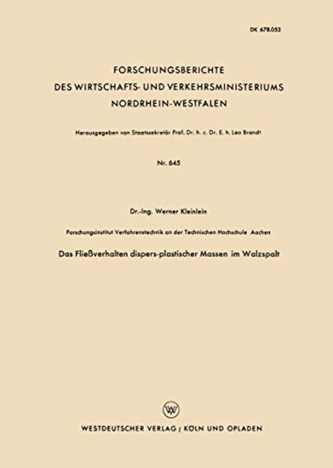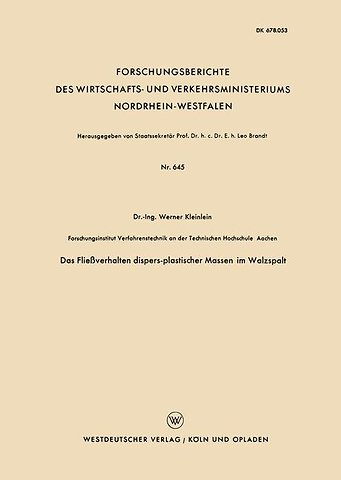 Gliederung.- 1. Einführung in die Rheologie dispers-plastischer Massen.- 2. Analytische Behandlung des Walzvorganges.- 2.1 Die hydrodynamische Gleichgewichtsbedingung.- 2.2 Die statische Gleichgewichtsbedingung.- 2.3 Zusammenfassung.- 3. Versuchsaufbau und -Durchführung.- 4. Versuchsergebnisse.- 4.1 Die Mengenmessung.- 4.2 Die Druckmessung.- 4.3 Die Drehmomentmessung.- 4.4 Versuch zur Klärung des Fließverhaltens.- 4.5 Diskussion der Versuchsergebnisse.- 4.6 Energetische Betrachtung.- 5. Zusammenfassung und Schlußbemerkung.- 6. Zusammenstellung der verwendeten Zeichen.- 7. Literaturverzeichnis.