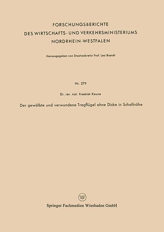 Als Fortsetzung und Erweiterung der Theorie von R. T. JONES ~J für ebene und vorn spitze Flügel kleiner Streckung werden für Verwindungs- und Wölbungsformen die aerodynamischen Daten bestimmt. Alle diese Werte sind von der Machzahl der Anströmung unabhängig. Andererseits kann die vor liegende Theorie für Flügel kleiner Streckung in einem schwachen Abwind feld und auch für schwache elastische Verformungen des Flügels Anwendung finden. Vergleiche mit mathematisch exakten Berechnungen von LANCE ~oJ und BEHRBOHM [~ an Dreieckflügeln zeigen gute Übereinstimmung für kleine Streckungen oder auch im Bereich der Schallnähe nach der PRANDTL-GLAUERT Regel für normale Streckungen. Die Druckpunktlage hat nach den exakten Theorien und der Näherungstheorie die gleichen Werte für die verschiede nen Verwindungsformen von Dreieckflügeln. Diese Übereinstimmung ist nicht mehr gegeben, wenn nach F. KEUNE [~ der Einfluß der Dickenverteilung auf die Druckpunktlage berücksichtigt wird, die in den exakten Theorien und in der vorliegenden Näherung vernachlässigt wurde. Die gegebenen relati ven Fehler der Näherungstheorie zu den mathematisch exakten Werten, die von der Machzahl der Anströmung und der Strömung des Flügels abhängen, verlieren damit praktisch einen Teil ihrer Bedeutung: Der Vergleich muß auf Flügel ohne Dicke beschränkt bleiben. Die Näherungstheorie gestattet neben einer raschen Berechnung insbesondere auch einen wertvollen Ein blick in die Beeinflussung der aerodynamischen Größen durch die Umrißform des Flügels, die exakt nur für Dreieckflügel bekannt ist. Außerdem zeigt sich, daß bereits ein wesentlich geringerer S-Schlag aus reicht, um einen gewölbten Flügel druckpunktfest zu machen, als bei glei chem Wölbungsauftrieb in der zweidimensionalen Theorie.