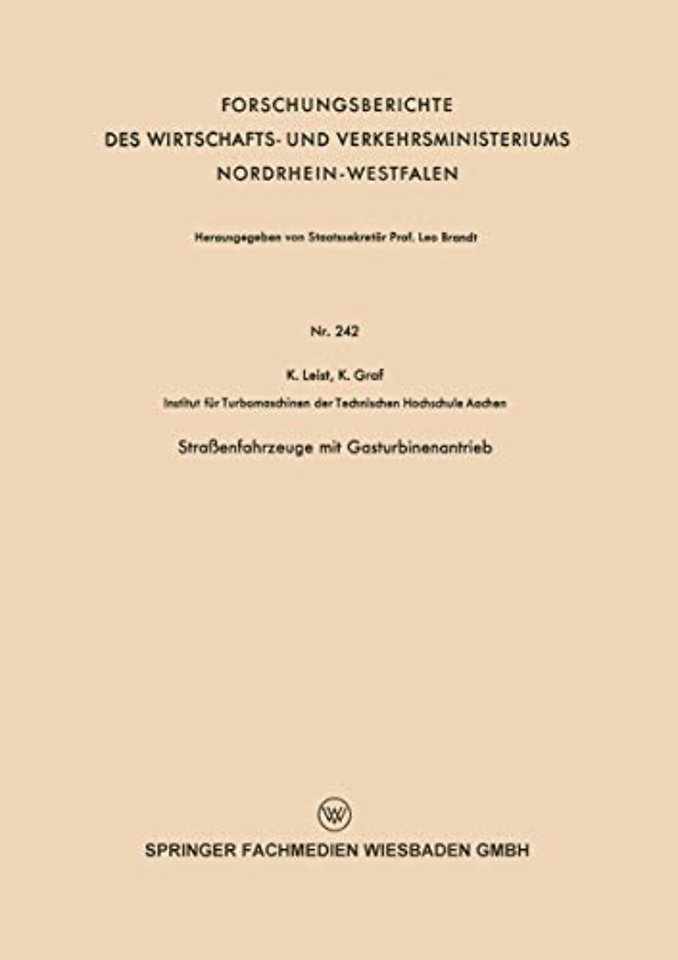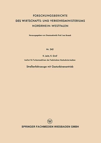 Gliederung.- A. Allgemeine Gesichtspunkte über den Einbau von Turbinen in Fahrzeuge.- B. Kleingasturbinen in Lastkraftwagen.- C. Omnibusantrieb durch Turbinen.- D. Personenwagen mit Gasturbinenantrieb.- E. Ausnutzung der Atomenergie zum Kraftwagenantrieb.- F. Zusammenfassung.- G. Benutzte Formelzeichen.- H. Literaturverzeichnis.