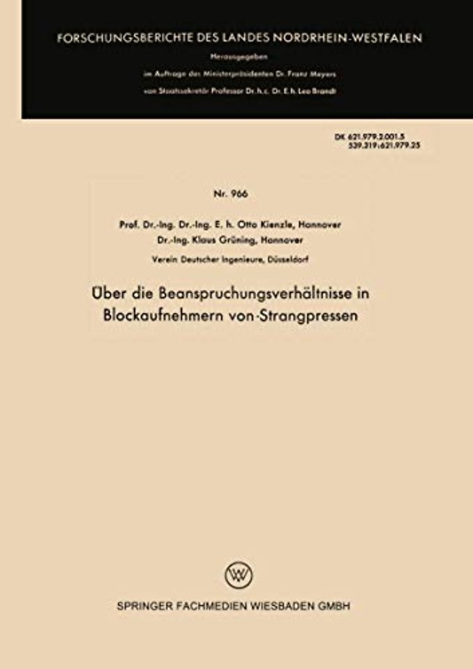 Über die Beanspruchungsverhältnisse in Blockaufnehmern von Strangpressen
