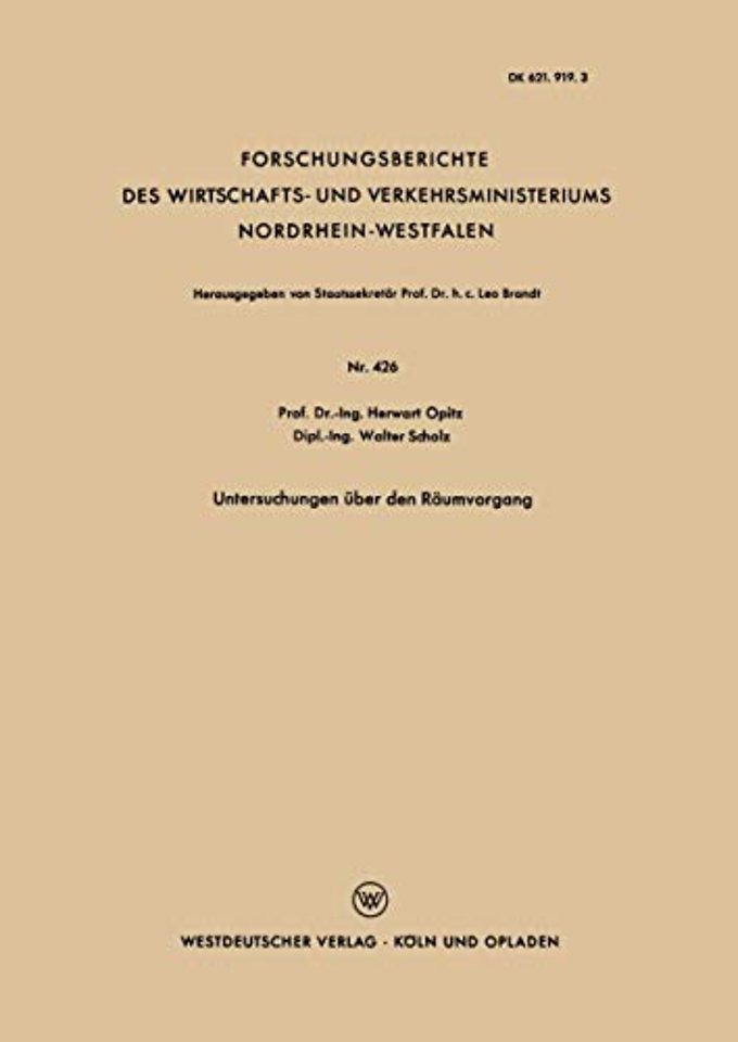 Gliederung.- Einführung.- I. Vorbemerkung.- II. Grundlagen des Räumvorganges.- 1. Einleitung.- 2. Gestaltung des Räumwerkzeuges.- 3. Einfluß der Schnittgeschwindigkeit.- 4. Einfluß der Schneidflüssiüs gkeit.- 5. Verschleißformen am Räumwerkzeug.- 6. Zusammenfassung.- III. Räumversuche an Stahl 16 Mn Cr 5.- 1. Versuchsdurchführung.- 2. Versuchsergebnisse und Auswertung.- 3. Zusammenfassung und Folgerungen aus den Meßergebnissen.- IV. Untersuchungen analoger Drehvorgänge.- 1. Einleitung.- 2. Versuchsdurchführung.- 3 Versuchsergebnisse.- 4. Zusammenfassung und Folgerungen aus den Meßergebnissen.- V. Schlußbemerkungen.- VI. Literaturverzeichnis.