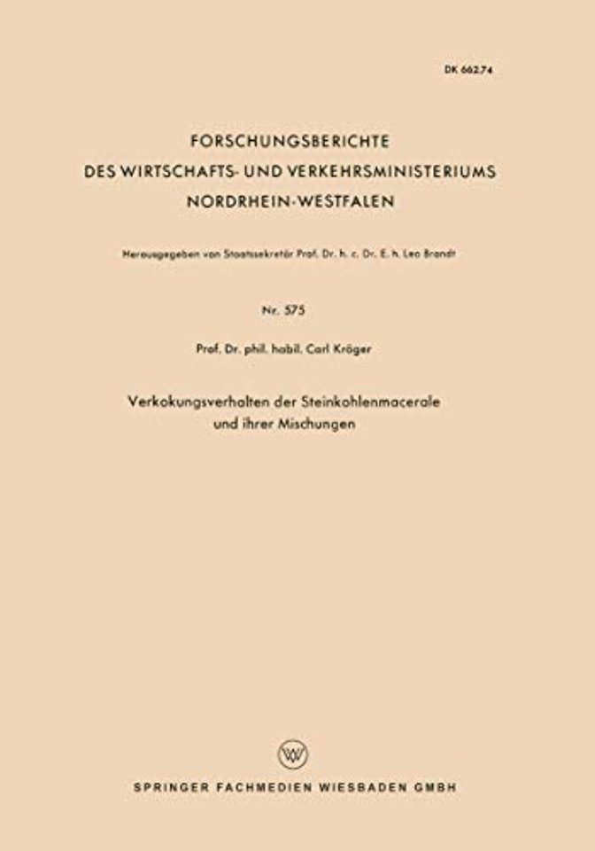 Gliederung.- I. Einleitung.- 1. Wirtschaftliche.- 2. Bedeutung der Maceralzusammensetzung der Einsatzkohlen für die Verkokung.- II. Gewinnung der Macerale.- III. Kokungseigenschaften der Macerale und Maceralmischungen.- 1 Untersuchungsmethoden.- 2. Dilatometerverhalten.- 3. Kohlenwertstoffbildung.- IV. Eigenschaften der angefallenen Kokse.- 1 Natur der Tiegel-, Blähgrad- und Bauer-Kokse.- 2. Wichten und Restgehalt an Flüchtigen der Bauerkokse.- 3. Adsorptionsvermögen für Wasserdampf.- 4. Elektrisches Leitvermögen.- V. Bedeutung der Untersuchungen für den Verkokungsprozeß.