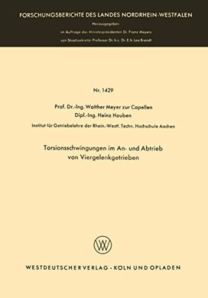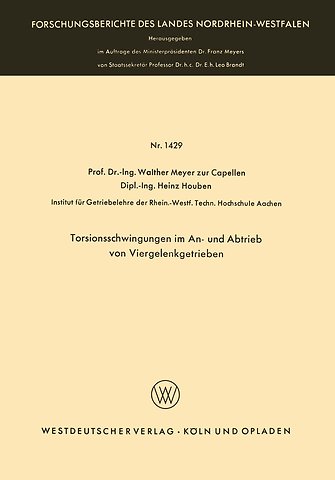 Größere Drehzahlen, auch in periodisch übersetzenden Getrieben, geben infolge der periodisch wechselnden Massenkräfte Anlaß zu den verschiedenartigsten Schwingungen. In dem vorliegenden Bericht werden die genauen Bewegungs gleichungen für Torsionsschwingungen in der An-und der Abtriebswelle eines Kurbeltriebes aufgestellt und durch ein praktisch brauchbares Näherungsver fahren ebenso wie auf dem Analogrechner gelöst. Die Ergebnisse werden durch entsprechende Versuche an Getrieben mit torsionselastischen Wellen bestätigt. Dem Herrn Ministerpräsidenten sei an dieser Stelle für die Förderung der Untersuchungen besonders gedankt. Eine wesentliche Voraussetzung für den erfolgreichen Abschluß der Arbeit wurde durch die Bereitstellung eines Analog rechners Type PACE TR 10 durch das Landesamt für Forschung geschaffen. Die Verfasser 5 Inhalt 1. Einleitung .................................................... 9 2. Bezeichnungen ................................................ 10 3. Bewegungsgleichungen ......................................... 12 4. Torsion nur im Abtrieb (Sonderfall 1) 17 5. Torsion nur im Antrieb (Sonderfall 2) 19 5.1 Weitere Betrachtungen zum Sonderfall 2 ..................... 20 6. Näherungsläsung des allgemeinen Gleichungssystems mit Hilfe der Hauptachsentransformation . . . . . . . . . . . . . . . . . . . . . . . . .. . . . . . 24 . . . . . . . 7. Analoge Integration der Bewegungsgleichungen ................... 29 7.1 Umformung der Bewegungsgleichungen ..................... 29 7.2 Aufbau und Erläuterung der Rechenschaltung ................ 29 7.2.1 Schaltung für die Bewegungsgleichung (43) .................. 30 7.2.2 Schaltung für die Bewegungsgleichung (44) .................. 30 7.3 Skalierungsmaßstäbe 31 8. Rechenbeispiele................................................ 33 8.1 Torsion im Antrieb einer Kurbelschwinge . . . . . . . . . . . . . . . . .. 33 . .