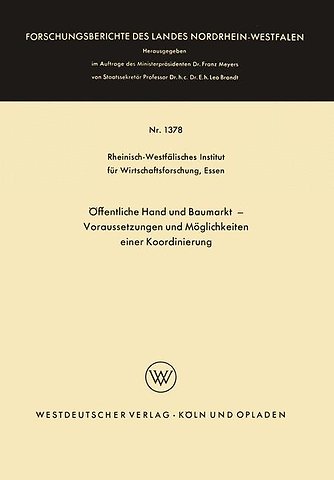 1. Öffentliche Verwaltungen und Baumarkt . . . . . . . . . . . . . . . . . . . . . . . . . . . 9 1. 1 Hoheitliche MaBnahmen . . . . . . . . . . . . . . . . . . . . . . . . . . . . . . . . . . . . 9 1. 11 Baupreisrecht und VOB . . . . . . . . . . . . . . . . . . . . . . . . . . . . . . . . . . . . 9 1. 12 Die Bauforschung . . . . . . . . . . . . . . . . . . . . . . . . . . . . . . . . . . . . . . . . . 14 1. 13 Die staatliche Wohnungsbauförderung . . . . . . . . . . . . . . . . . . . . . . . 14 1. 2 Die öffentliche Hand als Auftraggeber . . . . . . . . . . . . . . . . . . . . . . . . 16 1. 21 Bedeutung und Struktur der öffentlichen Nachfrage nach Bauleistungen in NRW . . . . . . . . . . . . . . . . . . . . . . . . . . . . . . . . 16 1. 22 Die öffentlichen Bauverwaltungen . . . . . . . . . . . . . . . . . . . . . . . . . . . 16 1. 221 Gliederung und organisatorischer Aufbau . . . . . . . . . . . . . . . . . . . . . 16 1. 222 Die Bauaufgaben der öffentlichen Bauverwaltungen . . . . . . . . . . . . 21 1. 223 Arbeitsweise und Verfahrenswege . . . . . . . . . . . . . . . . . . . . . . . . . . . 23 2. Die Problerne . . . . . . . . . . . . . . . . . . . . . . . . . . . . . . . . . . . . . . . . . . . . . . . . . . 30 2. 1 Koordinierung fiskalischer und hoheitlicher Aufgaben . . . . . . . . . . 30 2. 2 Die öffentlichen Bauinvestitionen als Mittel der Wirtschaftspolitik . . . . . . . . . . . . . . . . . . . . . . . . . . . . . . . . . . . . . . . . . 30 2. 3 Die jahreszeitliche Kontinuität . . . . . . . . . . . . . . . . . . . . . . . . . . . . . . 34 2. 31 Der Winterbau . . . . . . . . . . . . . . . . . . . . . . . . . . . . . . . . . . . . . . . . . . . . 35 2. 32 Möglichkeiten der öffentlichen Hand irn Wege der Nachfragestreuung . . . . . . . . . . . . . . . . . . . . . . . . . . . . . . . . . . . . . . . . 37 2. 4 Zur langfristigen Entwicklung . . . . . . . . . . . . . . . . . . . . . . . . . . . . . . 40 2. 41 Rückgang des Wohnungsbaus . . . . . . . . . . . . . . . . . . . . . . . . . . . . . . . 40 2. 42 Geringe Angebotselastizität der Kleinbetriebe . . . . . . . . . . . . . . . . . 46 2. 43 Mögliche wirtschaftspolitische MaBnahrnen . . . und Selbsthilfe . . . 49 2. 5 Der konjunkturpolitische Aspekt . . . . . . . . . . . . . . . . . . . . . . . . . . . . 52 2. 51 Konjunkturpolitik und WachsturnsprozeB . . . . . . . . . . . . . . . . . . . . 52 2. 52 Zur Elastizität der Haushaltsgebarung . . . . . . . . . . . . . . . . . . . . . . . . 54 2. 53 Längerfristige Baupläne . . . . . . . . . . . . . . . . . . . . . . . . . . . . . . . . . . . . 55 5 Vorwort Das Rheinisch-Westfälische Institut für Wirtschaftsforschung befaBt sich seit Be ginn des Jahres 1960 mit einer Analyse der Entwicklung und Verfassung des Baumarktes in Nordrhein-Westfalen. Die Forschungsarbeit wird vom Minister präsidenten des Landes Nordrhein-Westfalen, Landesamt für Forschung, und von der Wirtschaftsvereinigung Bauindustrie e. V. Nordrhein-Westfalen nnanziell gefördert. Im Rahmen dieser Analyse wurde Anfang 1961 die erste grundlegende Unter 1 suchung: Entwicklung und Situation des Baumarktes , veröffentlicht.