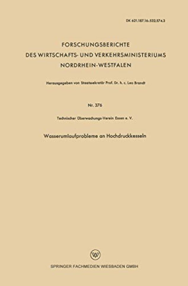 Gliederung.- 1. Problemstellung, bisherige Arbeiten, theoretische Unterlagen, Umlaufmodell.- 2. Meßverfahren.- 3. Dampfverteilung im Steigrohr.- 4. Wasser- und Dampfgeschwindigkeit.- 5. Rohrreibung für Dampfwassergemische.- 6. Zusammenfassung und Ausblick.- 7. Literaturverzeichnis.