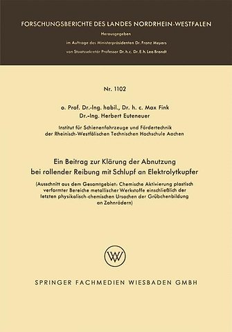 Ein Beitrag zur Klärung der Abnutzung bei rollender Reibung mit Schlupf an Elektrolytkupfer