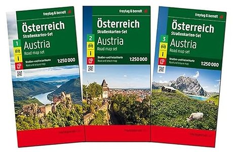 The Austria 1:250,000 road map set consists of three road and leisure maps in a practical transparent cover. The detailed map image and precise scale allow you to discover secondary roads and routes not shown on other road maps. Tourist routes and scenic routes are highlighted in color.