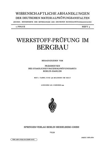 Allgemeine Werkstoff-Untersuchung.- Allgemeine Werkstoffprüfung im Bergbau.- Grubenausbau.- Herabsetzung der Brandgefahr in Gruben.- Schutz Gegen Holzzerstörung; Pilzschutz.- Mauerwerk im Grubenbetrieb und Seine Prüfung.- Der Beton im Streckenbau.- Verhalten von Frisch-Beton in Gefrierschächten.- Prüfung von Gusseisernen Schachtringen (Tübbingen).- Betriebseinrichtungen.- Die Bedeutung der Seilprüfstellen für das Seilprüfwesen.- Dauerversuche an Drähten und Seilen.- Prüfung von Zwischengeschirren.- Über die Prüfung von Förderseilflechtungen.- Auftragschweissungen an Maschinenteilen für Förder- Einrichtungen.- Prüfung und Überwachung der Bergwerksseile im Betrieb.- Werkstoff-Fragen in der Gezähewirtschaft.- Textilien im Bergbau.- Fragen des Gebirgsdrucks und der Abbauwirkungen.- Grundlagen für eine Beurteilung von Fragen der Festigkeit und der Formänderungen unter Bergbauwirkungen, die durch Strecken und Abbauräume Hervorgerufen Werden.- Erklärung von Druckwirkungen im Gebirge durch Platten-Statische Erörterungen.- Modellversuche zur Klärung der Spannungsverteilung in der Umgebung von Strecken im Gebirge.- Erz- und Gesteinsuntersuchung.- Über Fehlerquellen bei der Massanalytischen Eisenbestimmung nach Kessler-Reinhardt.- Erdölgehalt und Porosität Verschiedener Sedimentgesteine.