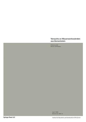 1.1 Problemstellung In vorgangigen Forschungsarbeiten wurden im Rahmen des Forschungsprojektes "Trag-und Bruchverhalten von Mauerwerksscheiben" die Grundlagen fUr eine sichere und wirtschaftliche Bemessung von Scheiben unter Normalkraft, Biegung und Schubkraft erarbeitet. An sogenannten "Kleinkkorperversuchen" aus Backstein, Kalksandstein und Zementstein wurden die Bruchbe dingung und das Verformungsverhalten des Mauerwerks unter einem beliebigen zweiachsigen Spannungszustand untersucht [1,2,3]. An den "Wandversuchen" aus Backstein wurde das Trag verhalten von Mauerwerksscheiben untersucht [4]. Die theoretische Bruchbedingung, das Trag verhalten und das Bemessungsverfahren wurden umfassend in einer Dissertation dargestellt [5]. Ziel dieser Forschungsarbeit ist die Untersuchung des Tragverhaltens von Mauerwerksscheiben aus Zementstein. Das theoretische Tragmodell soIl Uberprtift werden. 1.2 Versuchsprogramm Das experimentelle Programm ist in der Tabelle 1 zusammengestellt. Die Mauerwerksscheiben waren zwischen zwei Betonplatten gelagert und wurden durch eine konstante, gleichmassig verteilte Normalkraft zentrisch bela stet. Anschliessend wurden der obere Scheibenrand durch eine Schubkraft, die durch die obere Betonplatte in die Wand eingeleitet wurde, belastet und die Horizontalverschiebung stufenweise bis zum Bruch der Wand gesteigert. Es wurden zwei Lastniveaus untersucht. Das untere resp. obere Niveau entspricht ca. der Last im untersten Geschoss eines vierstockigen resp. achtstockigen Gebaudes. Die Wande waren an beiden Enden durch einen Flanschen seitlich stabilisiert. Bei einer Wand wurden die Flanschen weggelassen, urn den Einfluss derselben festzustellen.