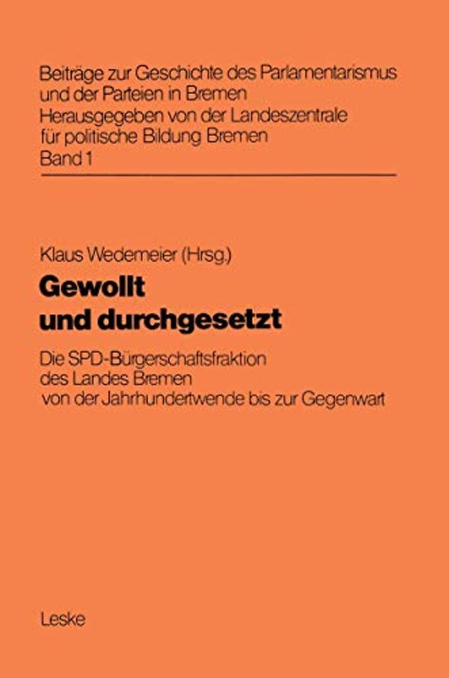 Die Resignierten Aufrütteln Anmerkungen zur Einführung in diesen Band.- Stark und Stabil Die SPD im Bremer Landesparlament.- Politische Themen und Ziele Die Bremer SPD in den Bürgerschaftswahlkämpfen 1899 – 1979.- Gewollt und Durchgesetzt Die SPD-Fraktion im Spiegelbild der Bürgerschaftsprotokolle.- Von der Kolonie zur Freien Gemeinde Sozialdemokratische Arbeit für Bremerhaven.- Der Parlamentarische Anfang Friedrich Ebert und die Bremer SPD-Fraktion bis 1905.- Weltkrieg, Revolution und Streiks Die SPD-Bürgerschaftsfraktion in unruhigen Zeiten.- Illusion und Wirklichkeit Die Bremer SPD-Fraktion in der ersten deutschen Republik.- Von der Halben zur Vollen Illegalität Die SPD-Bürgerschaftsfraktion im Jahre 1933.- Der Start Nach 1945 Wilhelm Kaisen und die SPD beim parlamentarischen Neubeginn.- Bewährung und Erfolg Die fünfziger Jahre in Bremen.- Wandel und Regeneration Die Bremer SPD-Fraktion der sechziger und siebziger Jahre.- Genossen Ihrer Zeit Bremer SPD-Fraktionsvorsitzende in Darstellungen anderer.- Bremer Auswahl-Bibliographie.- Personen-Register.- Autoren-Verzeichnis.