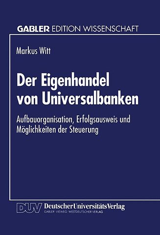 1. Problemstellung und Gang der Untersuchung.- 1.1 Einleitung.- 1.2 Problemstellung.- 1.3 Gang der Untersuchung.- 2. Die Eigengeschäfte der Universalbanken.- 2.1 Begriffsdefinition und Abgrenzung.- 2.1.1 Begriffsdefinition.- 2.1.2 Zur Abgrenzung der Eigengeschäfte von den Kommissionsgeschäften.- 2.1.3 Zur Abgrenzung der Eigengeschäfte aus geschäftspolitischer Sicht.- 2.2 Eigengeschäfte und Bankleistungsbegriff..- 2.2.1 Eigengeschäfte und marktorientierter Bankleistungsbegriff.- 2.2.2 Eigengeschäfte und innerbetrieblich orientierter Bankleistungsbegriff.- 3. Die Integration des Geschäftsbereiches für Eigengeschäfte in die Aufbauorganisation einer Universalbank unter Anwendung der Profit Center-Konzeption.- 3.1 Die Profit Center-Konzeption und deren Anforderungskriterien.- 3.2 Die bankbetrieblichen Organisationsformen.- 3.2.1 Die traditionelle Bankorganisation.- 3.2.2 Die marktorientierte Bankorganisation.- 3.2.3 Modifizierte marktorientierte Bankorganisationen.- 3.3 Der Entwurf einer Modellbank unter besonderer Berücksichtigung der Eigengeschäfte.- 3.3.1 Die Struktur des Geschäftsbereiches für Eigengeschäfte.- 3.3.2 Die Integration des Geschäftsbereiches für Eigengeschäfte in die Modellbank.- 3.3.3 Prüfung der Anforderungskriterien der Profit Center-Konzeption für den Geschäftsbereich Eigengeschäfte.- 3.3.4 Der Erfolgsmaßstab für den Geschäftsbereich Eigengeschäfte.- 3.4 Zusammenfassung der Ergebnisse.- 4. Die Steuerung der Eigengeschäfte.- 4.1 Die Steuerung der Eigengeschäfte über Verrechnungspreise.- 4.1.1 Die Grundlagen der Verrechnungspreistheorie.- 4.1.1.1 Die Steuerungsfunktion der Verrechnungspreise.- 4.1.1.2 Zwischen den Geschäftsbereichen ausgehandelte Verrechnungspreise.- 4.1.1.3 Von der Unternehmensleitung festgelegte Verrechnungspreise.- 4.1.2 Der Ansatz der Marktzinsmethode.- 4.1.2.1 Theoretische Grundlagen.- 4.1.2.2 Der Zinsstrukturbeitrag von Eigengeschäften.- 4.1.2.3 Der Zinskonditionsbeitrag von Eigengeschäften.- 4.1.2.4 Kritische Würdigung der Marktzinsmethode als Lenkpreissystem für Eigengeschäfte.- 4.2 Die Steuerung der Eigengeschäfte über die Erfolgsinformation.- 4.2.1 Die Interdependenzen von Steuerung und Erfolgsinformation.- 4.2.2 Die Marktzinsmethode als System zur Erfolgsermittlung von Eigengeschäften.- 4.2.2.1 Die Erfolgsermittlungsfunktion der Verrechnungspreise.- 4.2.2.2 Die Einzelgeschäftskalkulation im Rahmen der Marktzinsmethode.- 4.2.2.3 Kritische Würdigung der Steuerungsqualität des Ergebnisausweises der Marktzinsmethode bei Eigengeschäften.- 4.2.3 Der „steuerungsadäquate“ Ergebnisausweis bei nicht realisierten Kursgewinnen und -Verlusten.- 4.3 Die Steuerung der Eigengeschäfte über das Budget-Management und über Limite.- 4.3.1 Theoretische Grundlagen.- 4.3.2 Die Steuerung des Effekteneigenhandels über das Budget-Management und über Limite.- 4.3.3 Die Steuerung des Deviseneigenhandels über das Budget-Management und über Limite.- 4.3.4 Die Steuerung des Geldhandels über das Budget-Management und über Limite.- 4.4 Zusammenfassimg der Ergebnisse.- 5. Der Erfolgsausweis im Geschäftsbereich für Eigengeschäfte.- 5.1 Allgemeine Probleme bei Erfolgsrechnungen für Eigenhandelsbereiche.- 5.1.1 Zur verantwortungsgerechten Zuweisung der Erfolgskomponenten von Eigengeschäften.- 5.1.2 Zur Ermittlung der Erfolgsbeiträge des Eigenhandels bei kompensatorischen Geschäften zur Aktiv-Passiv-Steuerung.- 5.1.3 Zum Problem der Periodenabgrenzung.- 5.1.4 Absoluter versus relativer Gewinnbegriff.- 5.1.5 Zur Bestimmung und Bewertung des im Betriebsbereich eingesetzten Kapitals.- 5.1.6 Zur Verzinsung des Restgewinnes.- 5.2 Die Profit Center-Rechnungen im Eigenhandel.- 5.2.1 Die Profit Center-Rechnung für den Renteneigenhandel.- 5.2.2 Die Profit Center-Rechnung für den Aktieneigenhandel.- 5.2.3 Die Profit Center-Rechnung für den Deviseneigenhandel.- 5.2.3.1 Der Ergebnisbeitrag der Kassageschäfte.- 5.2.3.2 Der Ergebnisbeitrag der Swapgeschäfte.- 5.2.3.3 Der Ergebnisbeitrag der Depotgeschäfte.- 5.2.4 Die Profit Center-Rechnung für den Geldhandel.- 5.2.5 Die Aggregation der einzelnen Profit Center-Rechnungen zu einer Erfolgsrechnung für den Geschäftsbereich Eigengeschäfte.- 5.3 Der Erfolgsausweis als Grundlage zur Bemessung erfolgsorientierter Gehaltsbestandteile.- 6. Zusammenfassung.