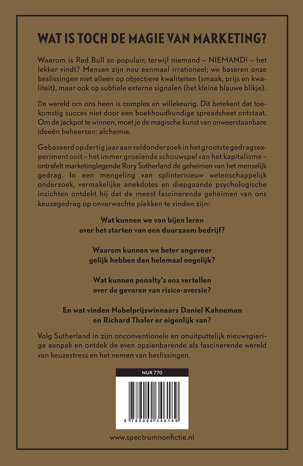 Branding kan niet alleen helpen bij het verkopen van producten, maar kan ook sociale doelen bevorderen: mensen belasting laten betalen, de volksgezondheid verbeteren of het bevorderen van meer vrouwen in de technologiesector. Sutherland neemt zijn lezer mee door de onvoorspelbare en fascinerende wereld van het nemen van beslissingen.