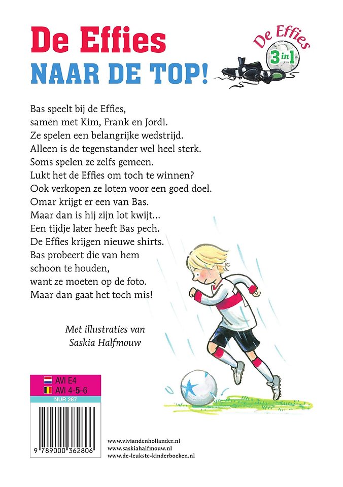 Deze bundel bevat drie succesvolle AVI-boeken vol sportieve avonturen rond het voetbalveld. In Een mooie actie verkoopt Bas samen met zijn team lootjes voor het goede doel. In Op naar de top moeten de Effies nog één wedstrijd winnen om kampioen te worden – maar dan gebeurt er iets heel vervelends tijdens de rust. En in Een knal tegen de bal krijgen de Effies nieuwe shirts. Bas doet zijn best om zijn shirt schoon te houden, maar dan gaat het toch mis…