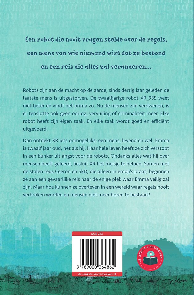 Dan ontdekt XR iets wat hij nooit voor mogelijk hield: een mens. Emma is ook twaalf jaar oud en heeft zich haar hele leven verborgen gehouden in een bunker uit angst voor de machines. XR raakt al snel bevriend met het mensenmeisje en samen met de stalen reus Ceer en SkD, die alleen in emoji’s praat, beginnen ze aan een gevaarlijke reis naar de plek waar Emma veilig hoopt te zijn. Maar hoe kunnen ze overleven in een wereld waar regels nooit verbroken worden en mensen niet meer horen te bestaan?