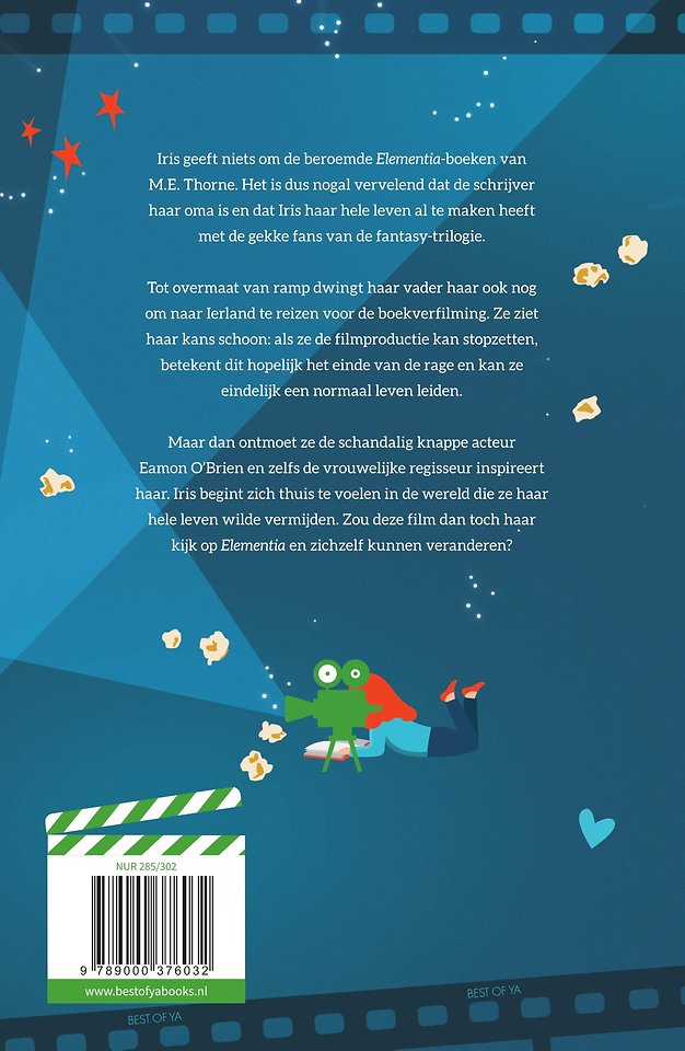 Maar dan ontmoet ze de schandalig knappe acteur Eamon O’Brien en zelfs de vrouwelijke regisseur inspireert haar. Iris begint zich thuis te voelen in de wereld die ze haar hele leven wilde vermijden. Zou deze film dan toch haar kijk op Elementia en zichzelf kunnen veranderen?