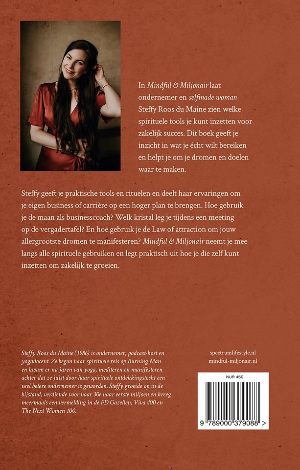 Meer over Steffy Roos du MaineIn 'Mindful & Miljonair: De spirituele gids voor zakelijk succes' laat ondernemer en selfmade woman Steffy Roos du Maine zien welke spirituele tools je kunt inzetten voor zakelijk succes. Want spiritueel én succesvol zijn: dat is dé gouden combinatie. Dit boek geeft je inzicht in wat je echt wilt bereiken en helpt je om je dromen en doelen waar te maken.
