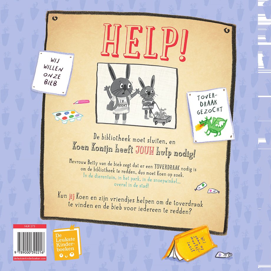 Koen Konijn en zijn broertje Kenny gaan naar hun lievelingsplek, de bibliotheek. Maar eenmaal daar blijken alle kasten en planken leeg! Mevrouw Betty van de bieb vertelt dat er te weinig mensen komen. Daarom moet de bieb voorgoed dicht. Alleen een toverdraak kan de bieb nog redden.