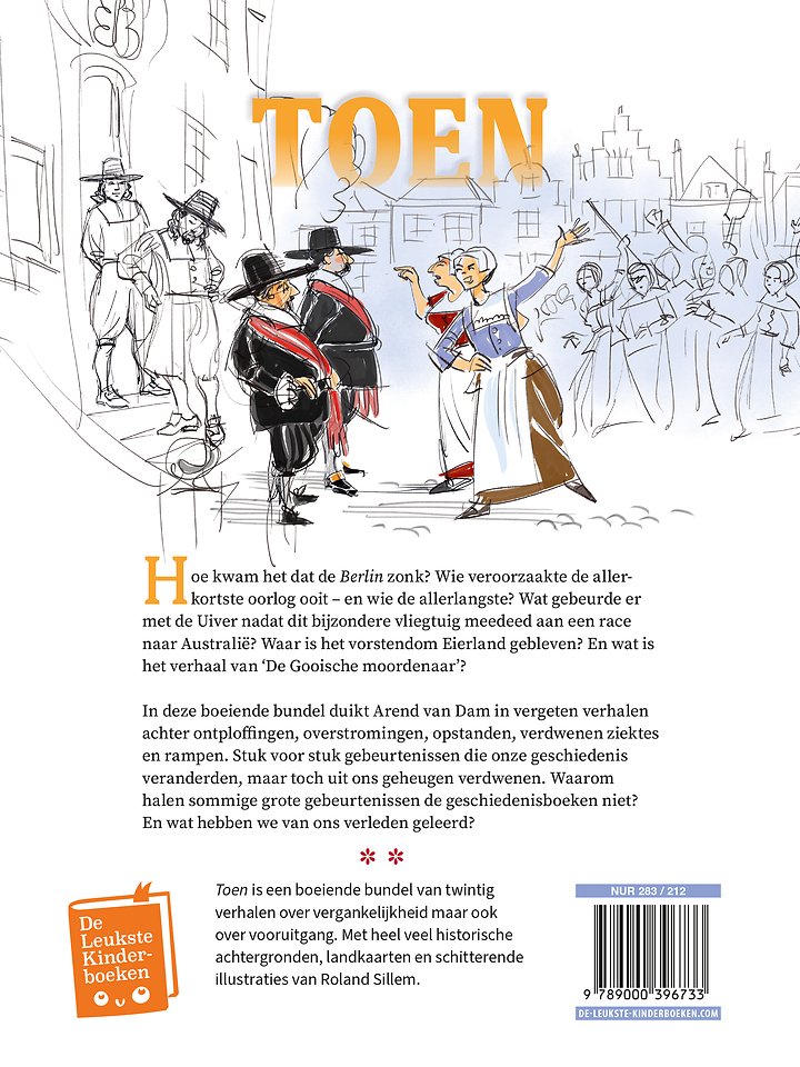 Toen is een boeiende verhalenbundel over verdwenen dorpen, verwoestende ontploffingen, verlaten ruïnes, vergissingsbombardementen een vergeten stormrampen. Wat hebben we daar in de loop van de jaren eigenlijk van geleerd? Om voor te lezen aan nieuwsgierige kinderen vanaf 8 jaar of zelf te lezen vanaf 9 jaar. De verhalen worden verrijkt met achtergrondinformatie, landkaarten en schitterende illustraties van Roland Sillem.