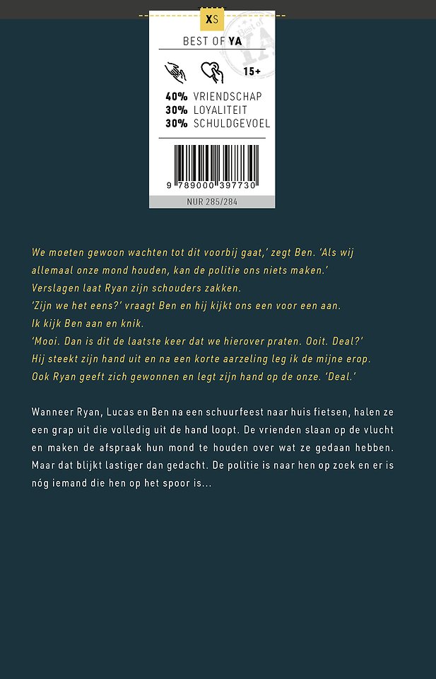 Geschrokken besluiten de jongens niets te zeggen. Maar al snel wordt duidelijk dat dit niet zo makkelijk gaat: de politie is op zoek naar de dader. En er is nóg iemand die hen zoekt – en zelfs naar het leven lijkt te staan…
