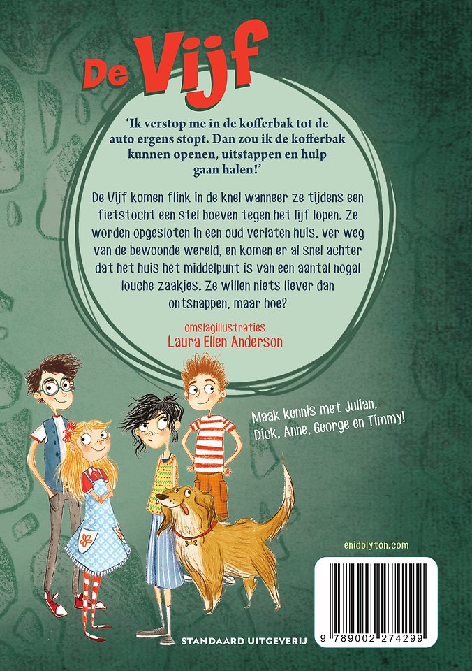 De Vijf komen flink in de knel wanneer ze tijdens een fietstocht een stel boeven tegen het lijf lopen. Ze worden opgesloten in een oud verlaten huis, ver weg van de bewoonde wereld, en komen er al snel achter dat het huis het middelpunt is van een aantal nogal louche zaakjes. Ze willen niets liever dan ontsnappen, maar hoe?