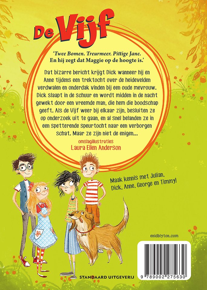 Dat bizarre bericht krijgt Dick wanneer hij en Anne tijdens een trektocht over de heidevelden verdwalen en onderdak vinden bij een oude mevrouw. Dick slaapt in de schuur en wordt midden in de nacht gewekt door een vreemde man, die hem die boodschap geeft. Als de Vijf weer bij elkaar zijn, besluiten ze op onderzoek uit te gaan, en al snel belanden ze in een spetterende speurtocht naar een verborgen schat. Maar ze zijn niet de enigen...