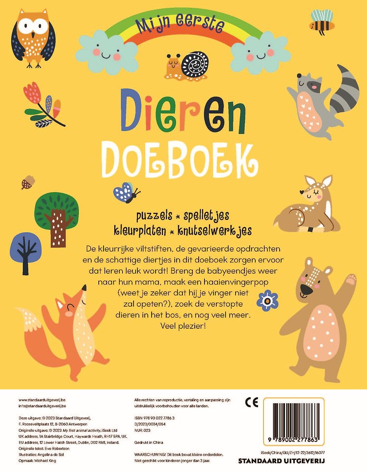 De kleurrijke viltstiften, de gevarieerde opdrachten en de schattige diertjes in dit doeboek zorgen ervoor dat leren leuk wordt! Breng de babyeendjes weer naar hun mama, maak een haaienvingerpop, zoek de verstopte dieren in het bos, en nog veel meer.
